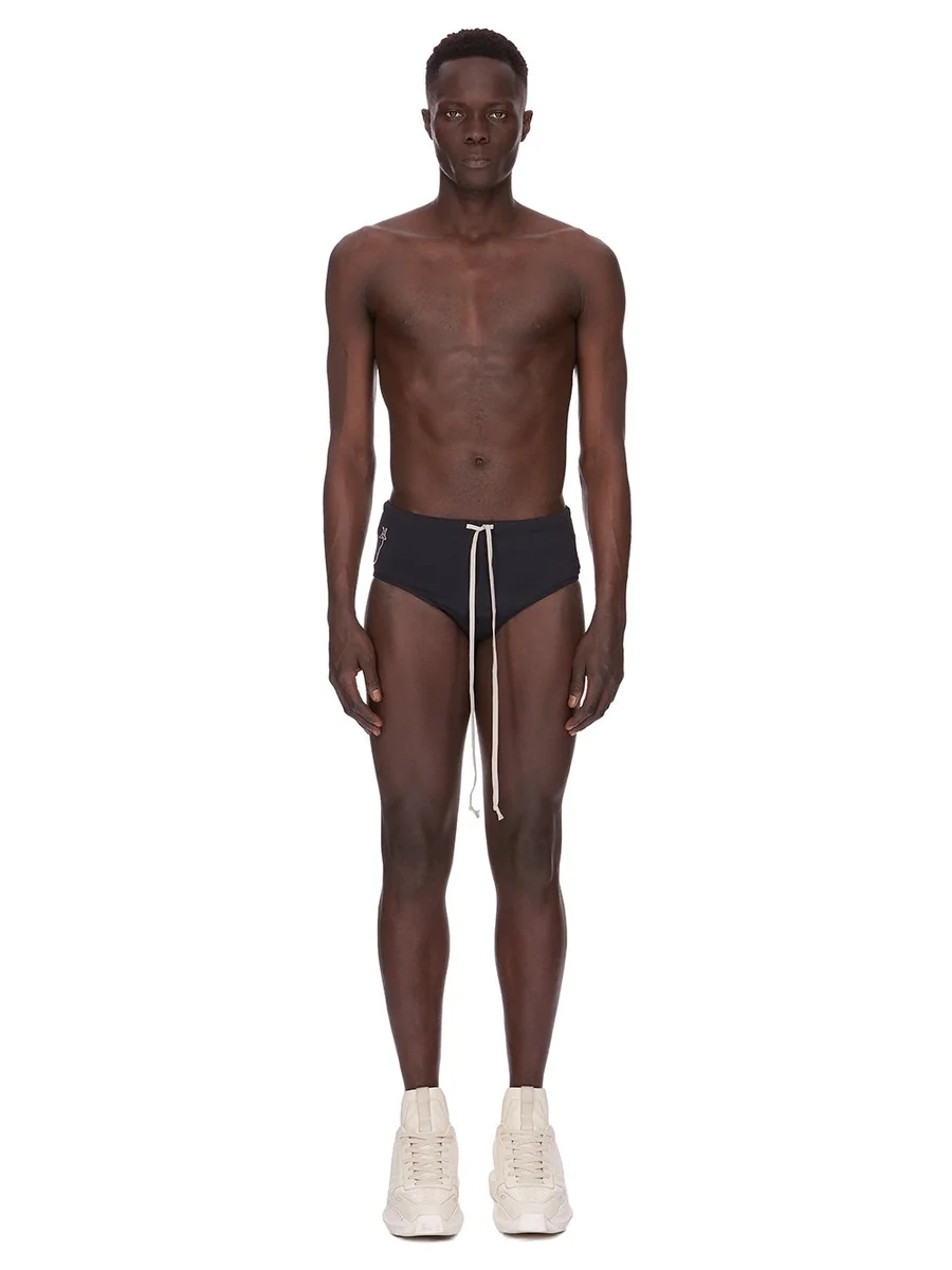 CHAMPION X RICK OWENS SS25 SWIM BRIEF IN BLACK SWIM JERSEY