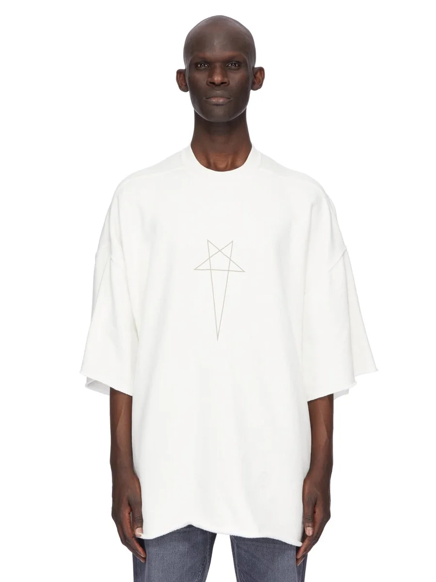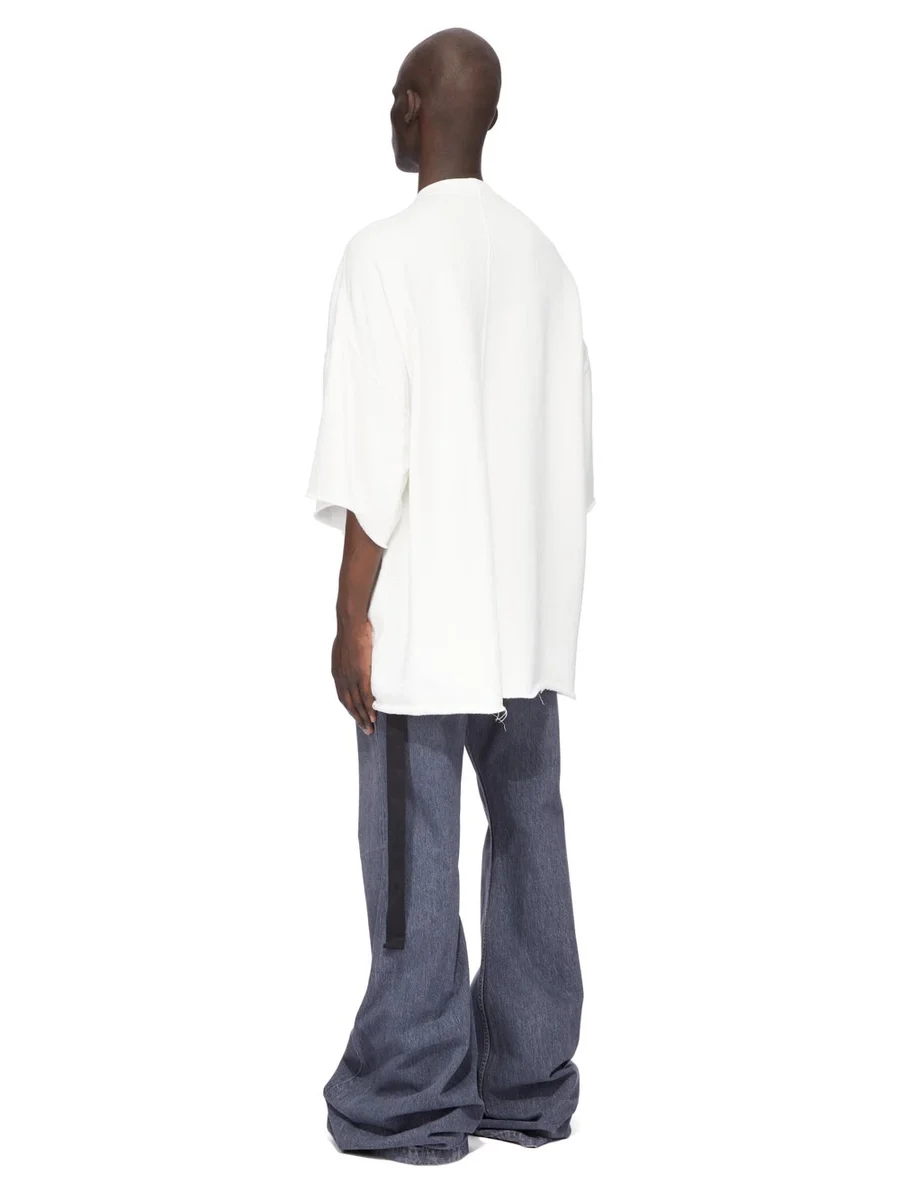 THIS TOMMY T IS BELOW HIP LENGTH WITH A JUMBO OVERSIZED FIT. IT HAS WIDE, SHORT SLEEVES WITH A DROPPED ARMHOLE AND A RIBBED CREWNECK. IT FEATURES SIGNATURE FRONT LEVEL SHOULDER SEAMS AND A CENTRE BACK SEAM.