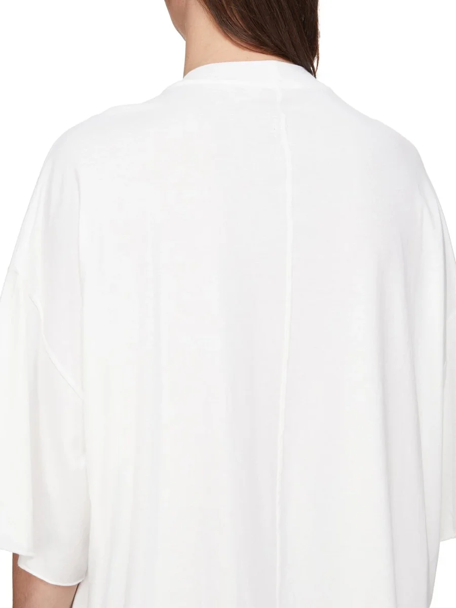 THIS TOMMY T IS BELOW HIP LENGTH WITH A JUMBO OVERSIZED FIT. IT HAS WIDE, SHORT SLEEVES WITH A DROPPED ARMHOLE AND A RIBBED CREWNECK. IT FEATURES SIGNATURE FRONT LEVEL SHOULDER SEAMS AND A CENTRE BACK SEAM.