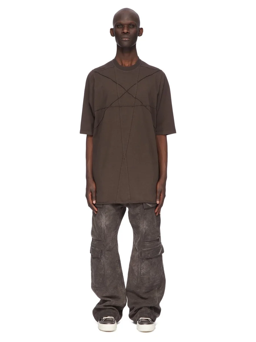THIS JUMBO SS T IS BELOW HIP LENGTH WITH AN OVERSIZED FIT. IT HAS A RIBBED CREWNECK AND ELBOW-LENGTH SHORT SLEEVES. IT FEATURES SIGNATURE FRONT LEVEL SHOULDER SEAMS AND A CENTRE BACK SEAM.