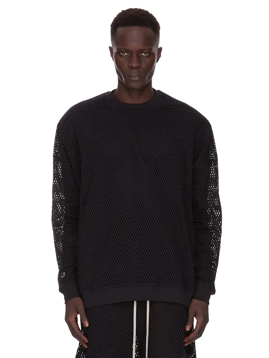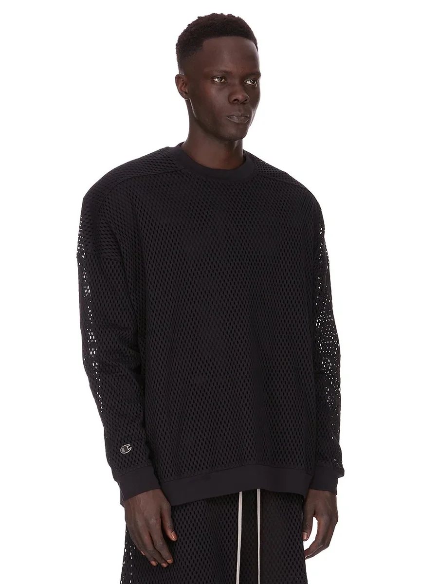 CHAMPION X RICK OWENS SS25 JUMBO SWEAT IN BLACK OPEN MESH JERSEY