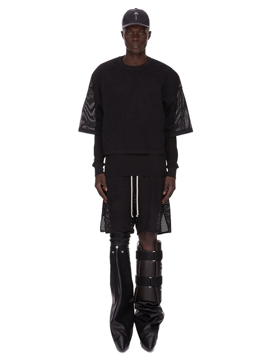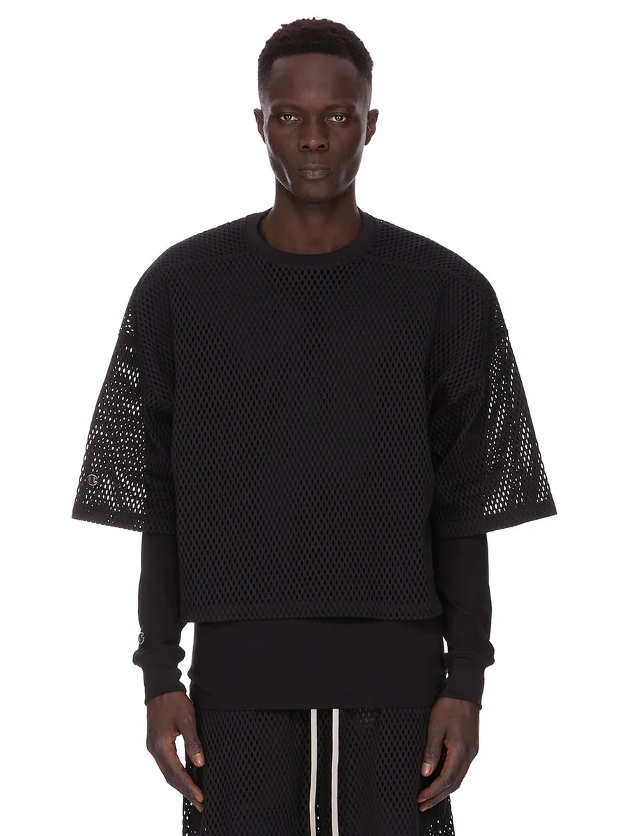 CHAMPION X RICK OWENS SS25 TOMMY T CROPPED IN BLACK OPEN MESH JERSEY