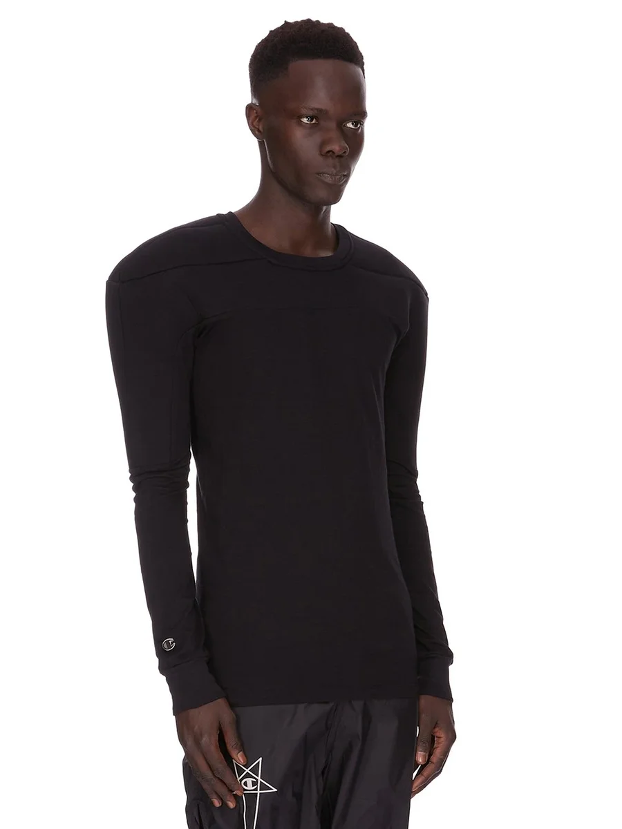 CHAMPION X RICK OWENS SS25 GIRDERED HARNESS IN BLACK COTTON JERSEY