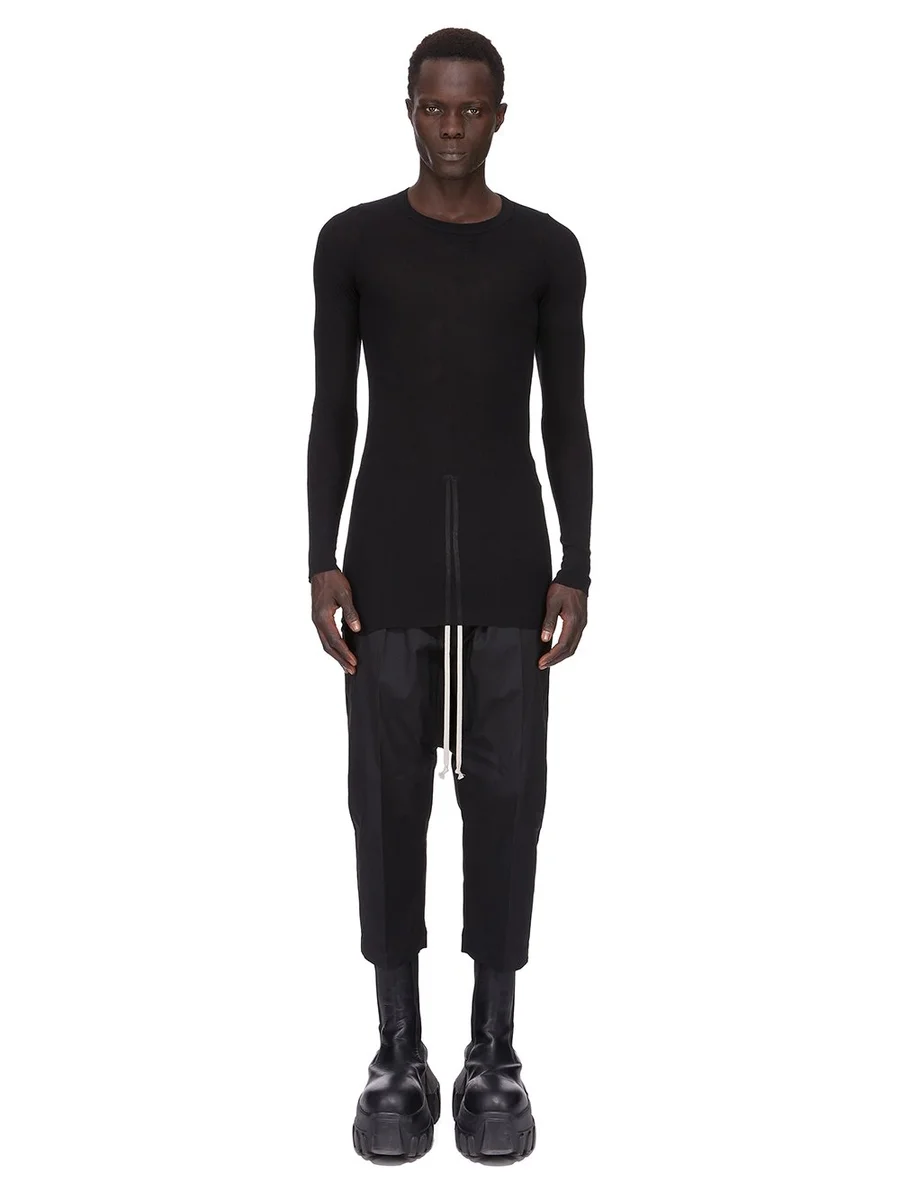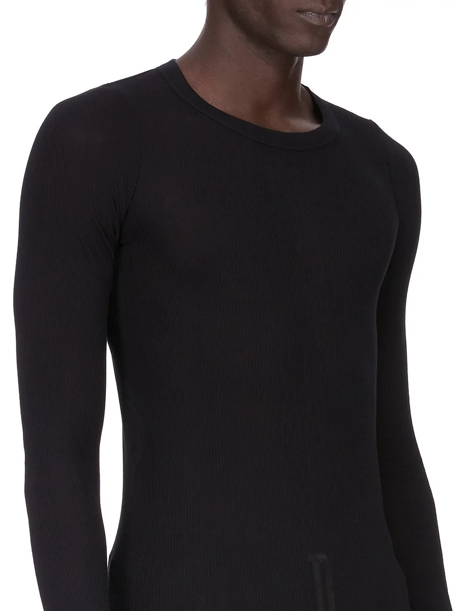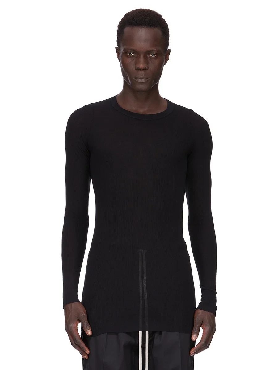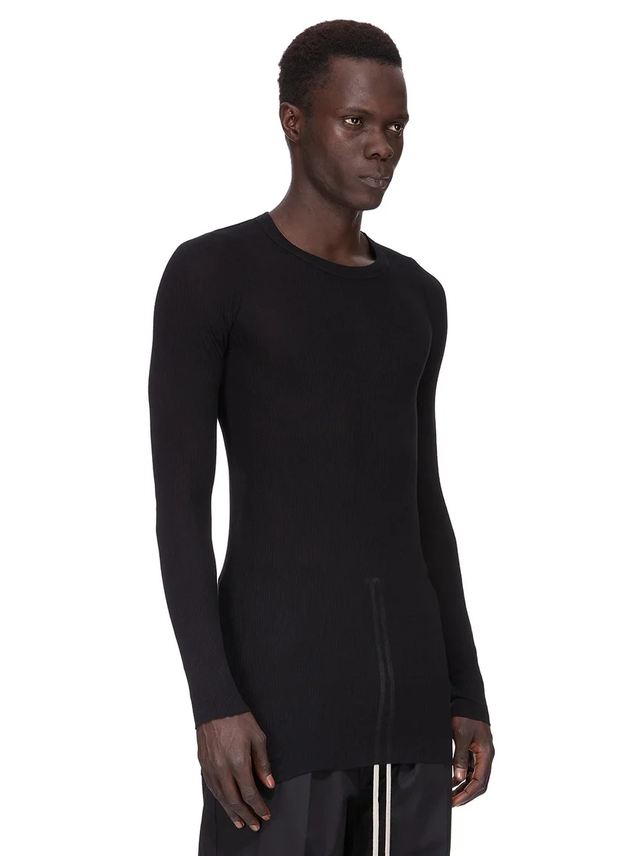 RICK OWENS FOREVER RIB LS T IN BLACK VISCOSE SILK RIB JERSEY