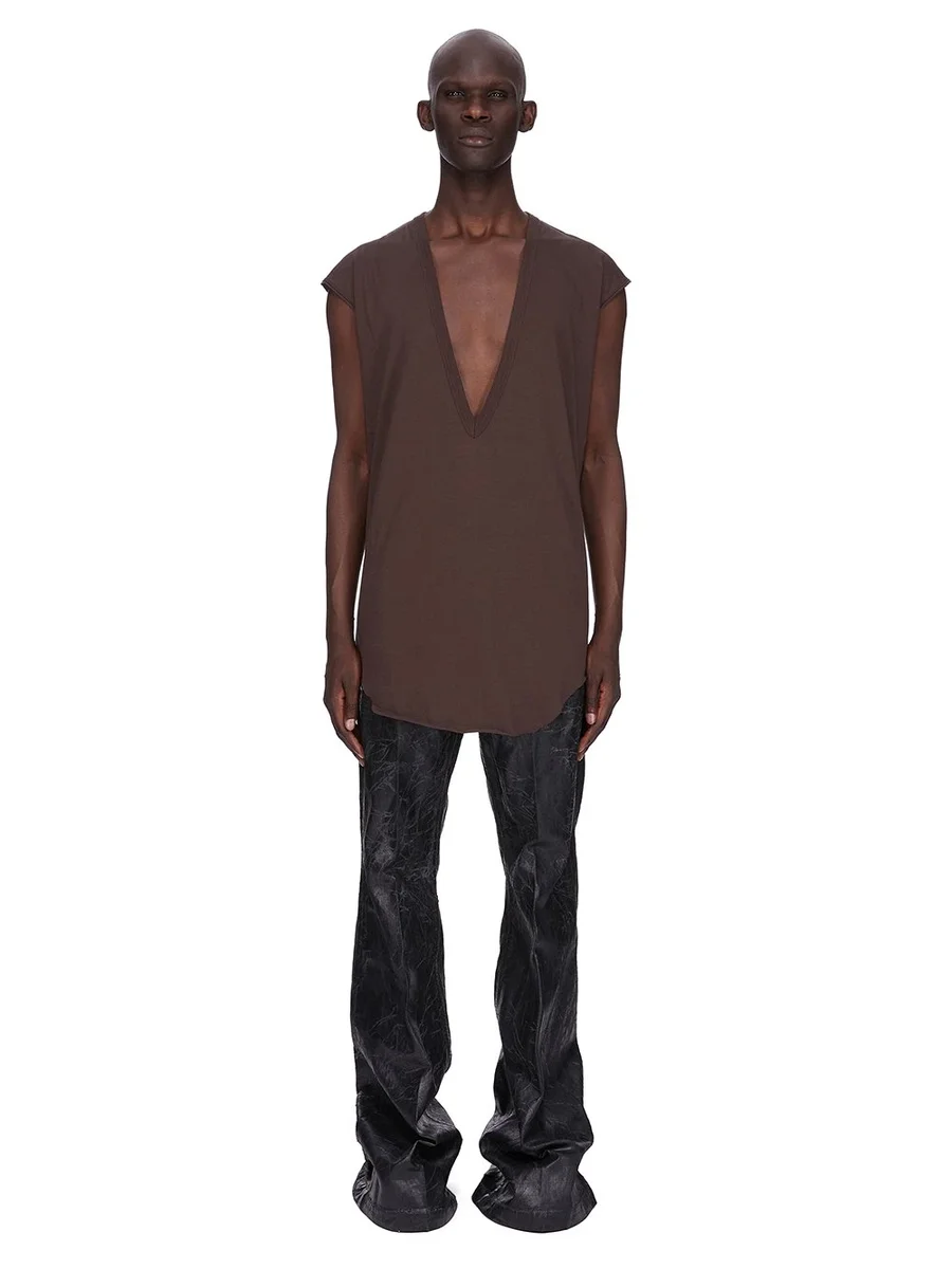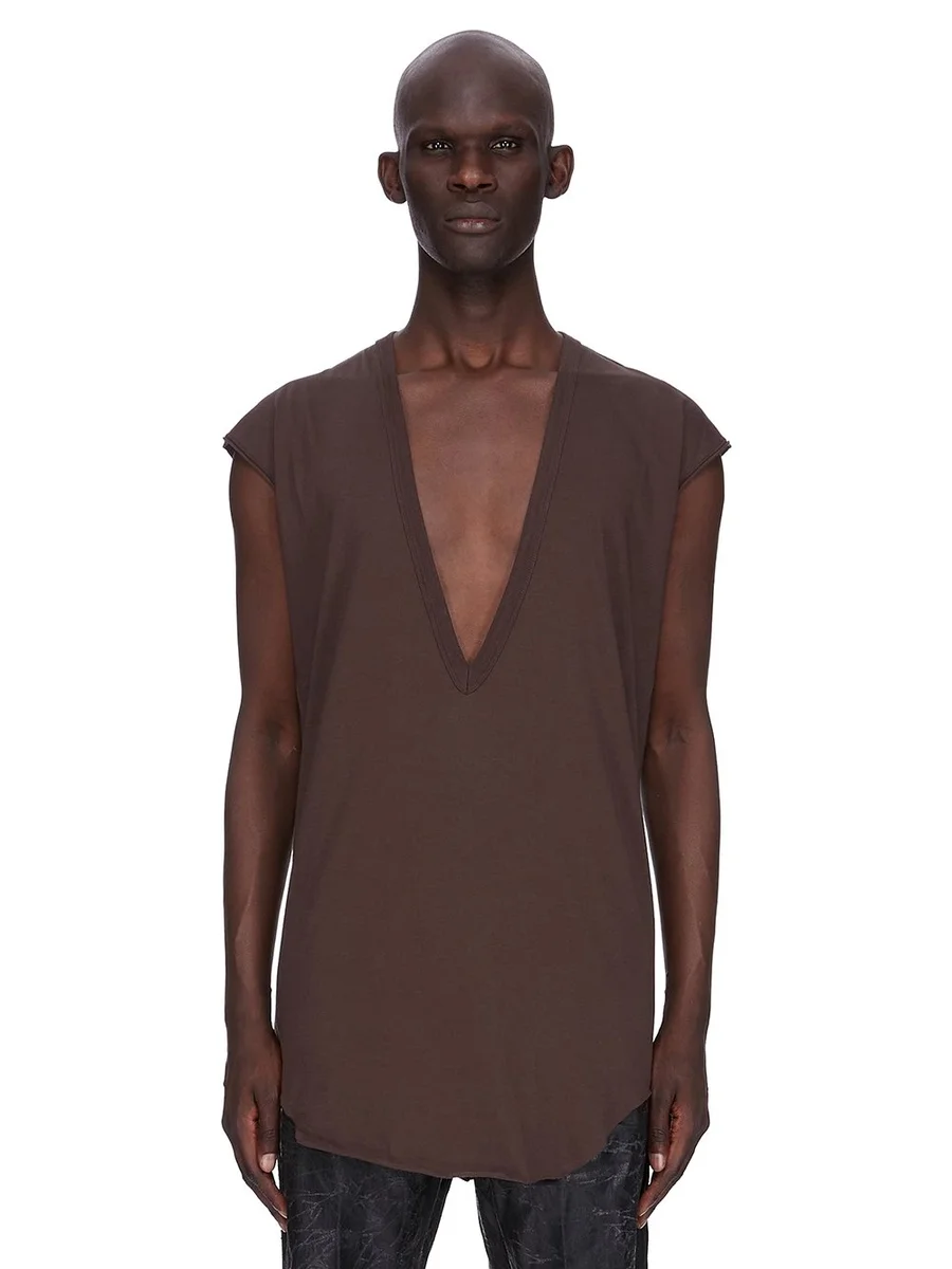 THIS DYLAN T IS BELOW HIP LENGTH, IT HAS AN EXTREME DEEP V NECK WITH WIDE TANK SHOULDERS WITH REINFORCED RAW CUT ARMHOLES. IT FEATURES THE SIGNATURE SINGLE SEAM RUNNING DOWN THE CENTRE BACK SPINE.