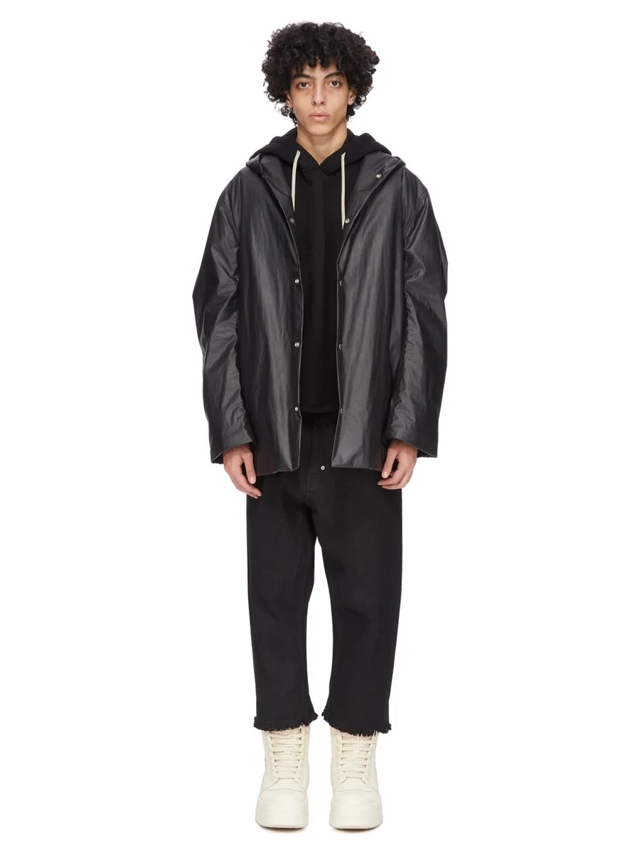 RICK OWENS FW25 CONCORDIANS RUNWAY HOODED TUNIC IN BLACK COMPACT TERRY JERSEY