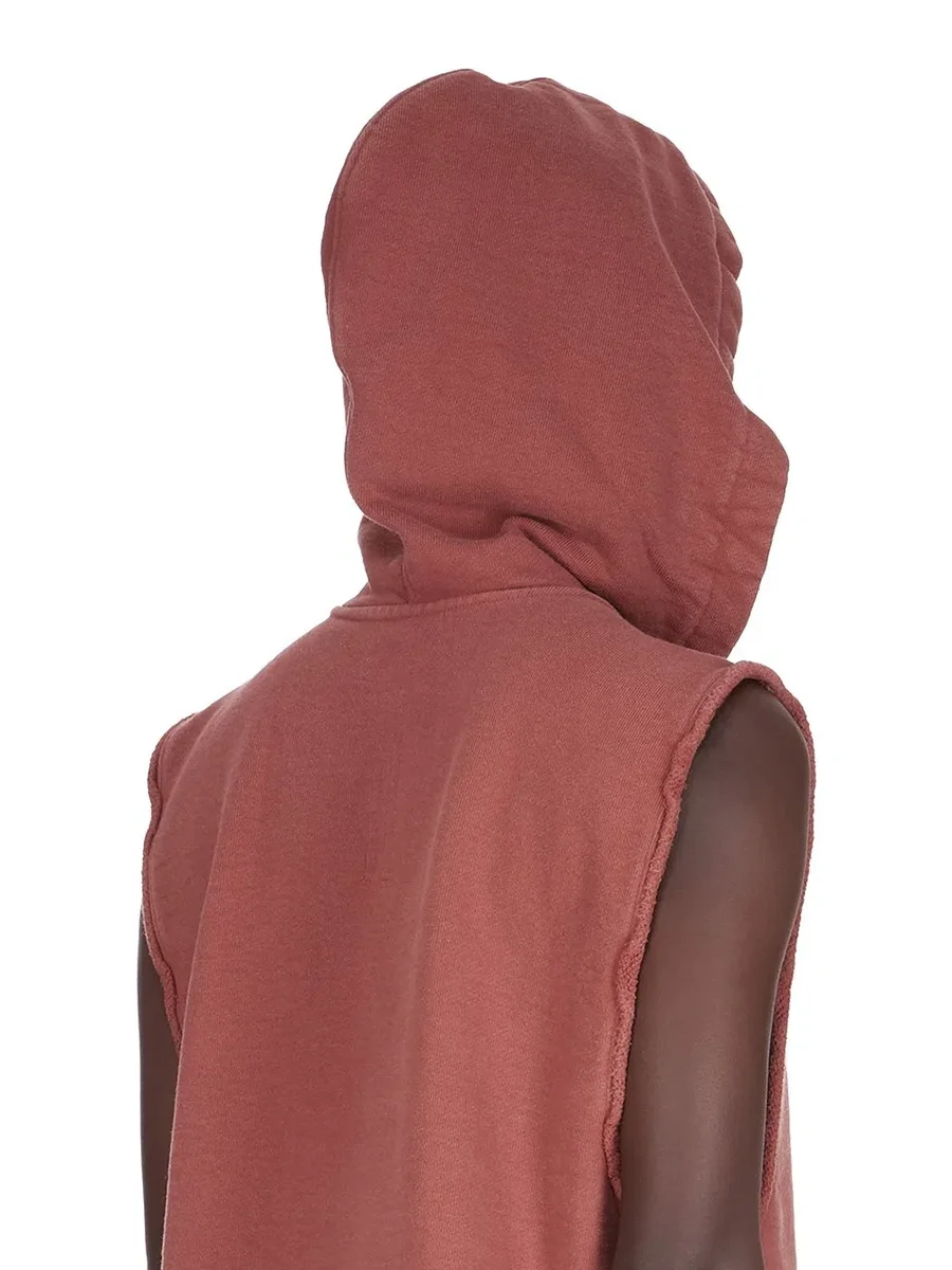 RICK OWENS FW25 CONCORDIANS RUNWAY HOODED TUNIC IN ROSEWOOD COMPACT TERRY JERSEY