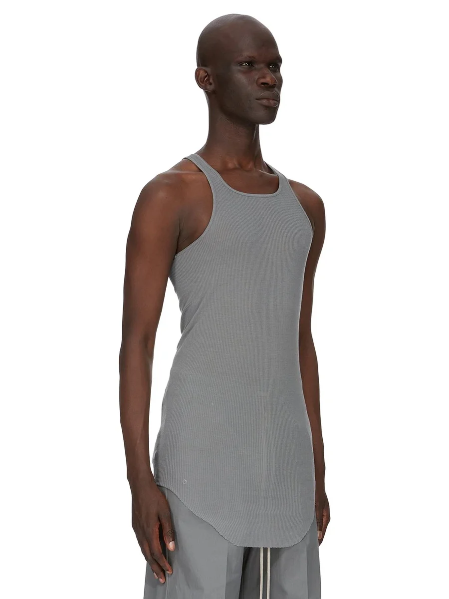 RICK OWENS FW25 CONCORDIANS BASIC RIB TANK IN WASHED INDIGO VISCOSE SILK RIB JERSEY
