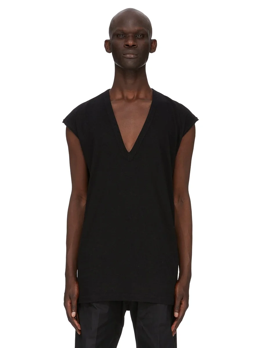 RICK OWENS FW25 CONCORDIANS DEEP V SL T IN BLACK RAININO JERSEY
