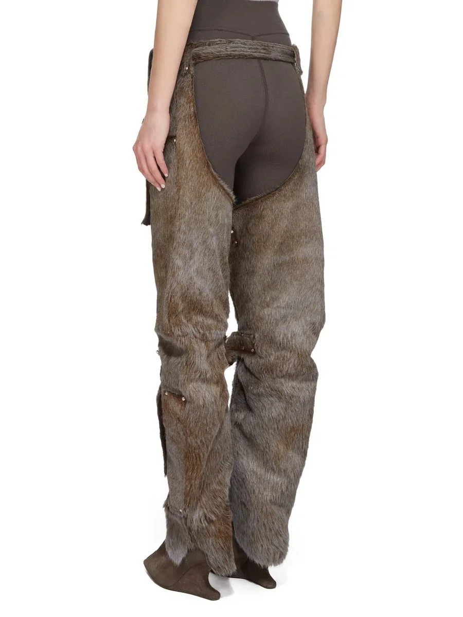 RICK OWENS FW25 CONCORDIANS RUNWAY RICK OWENS/LEO PROTHMANN CHAPS IN INDIGO MELANGE UNSHAVED COW LEATHER