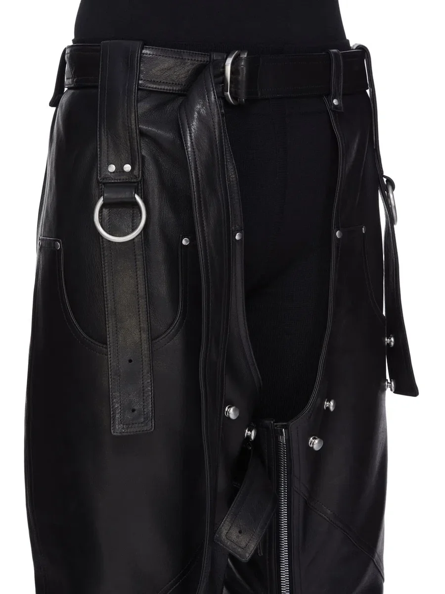 RICK OWENS FW25 CONCORDIANS RUNWAY RICK OWENS/LEO PROTHMANN CHAPS IN BLACK VEG NAPPA LAMB