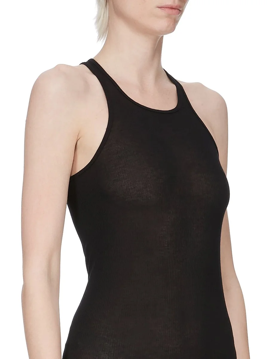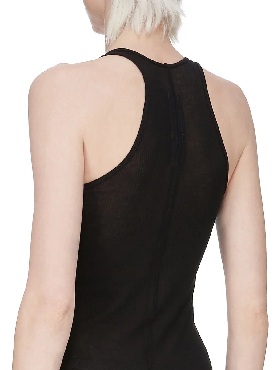 RICK OWENS FOREVER TANK DRESS IN BLACK VISCOSE SILK RIB JERSEY.