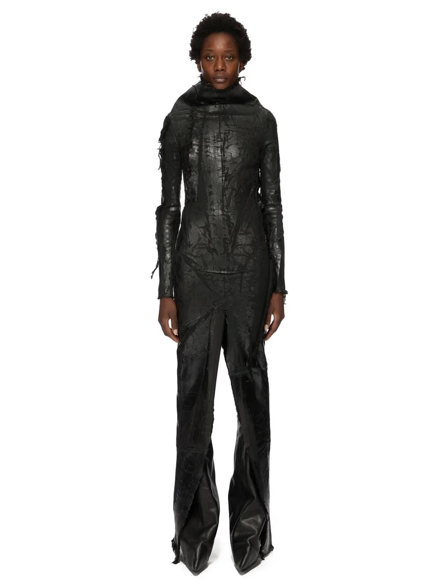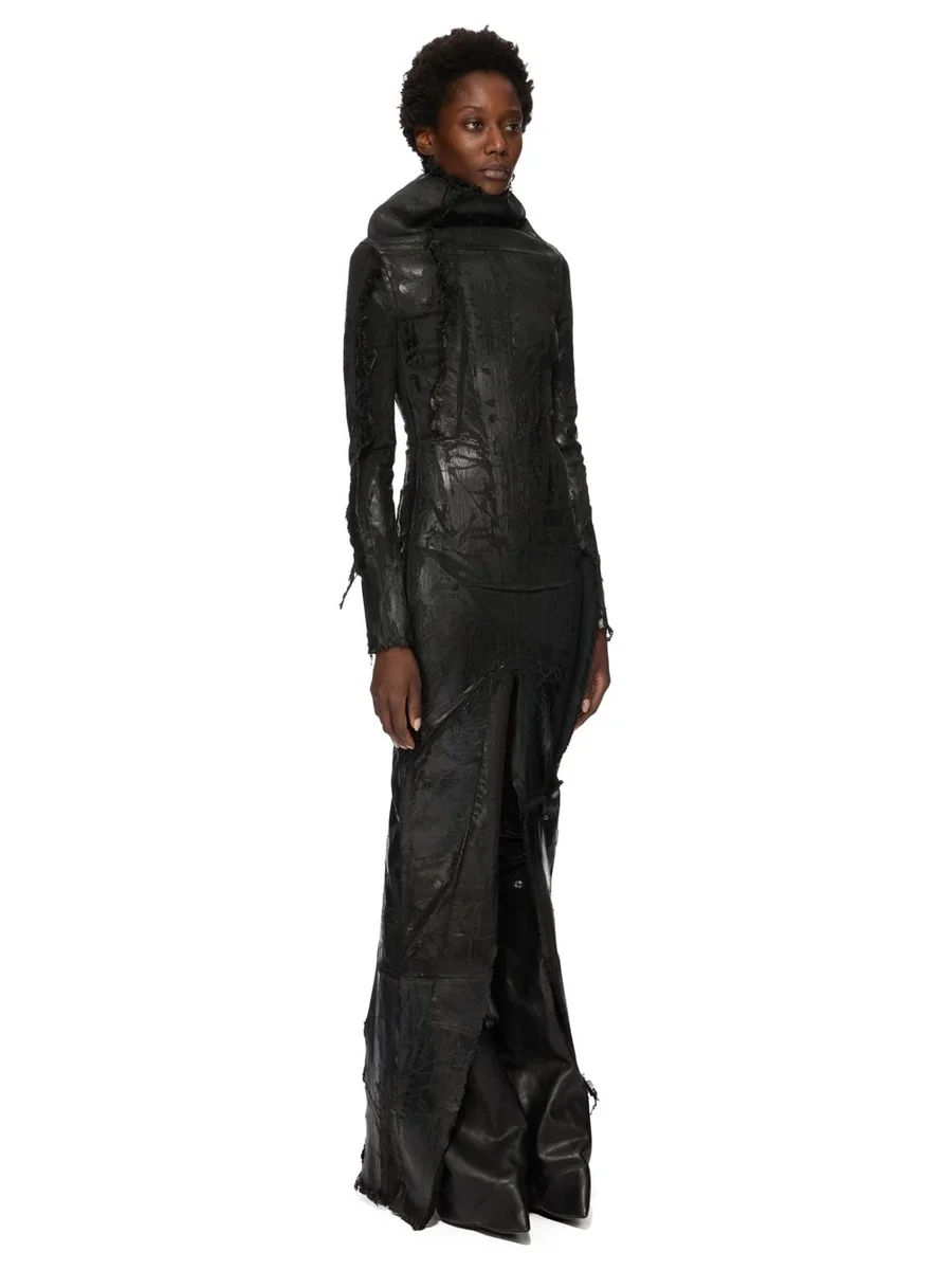 RICK OWENS FW25 CONCORDIANS RUNWAY ETNA DRESS IN BLACK BLACK MEGACRUST STRETCH DENIM