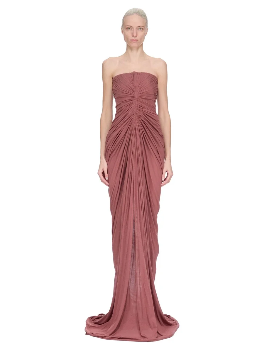 RICK OWENS FW25 CONCORDIANS RADIANCE BUSTIER GOWN IN ROSEWOOD UNSTABLE COTTON