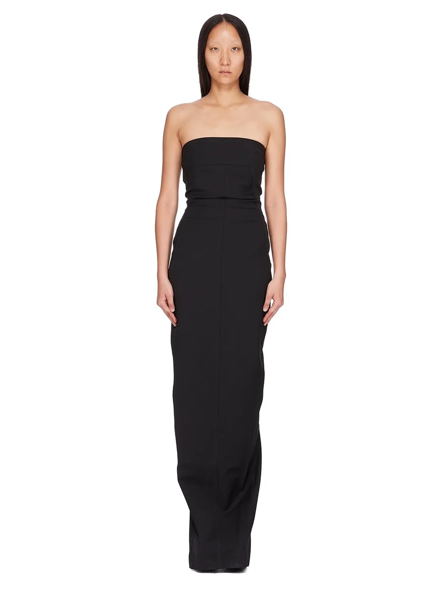 RICK OWENS FW25 CONCORDIANS BUSTIER GOWN IN BLACK STRETCH WOOL