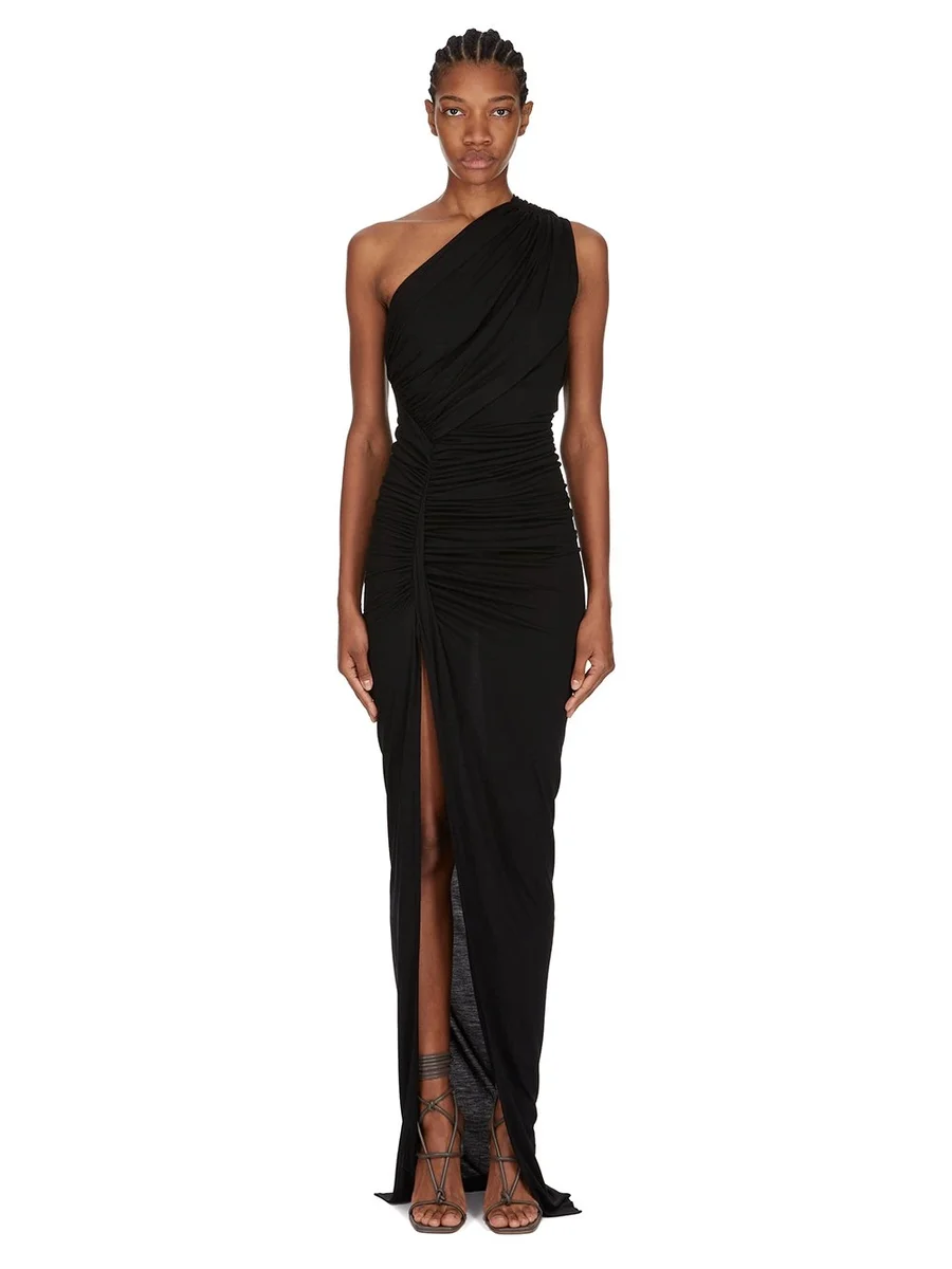 RICK OWENS LILIES FW25 CONCORDIANS AVRA GOWN IN BLACK FLUID VISCOSE JERSEY