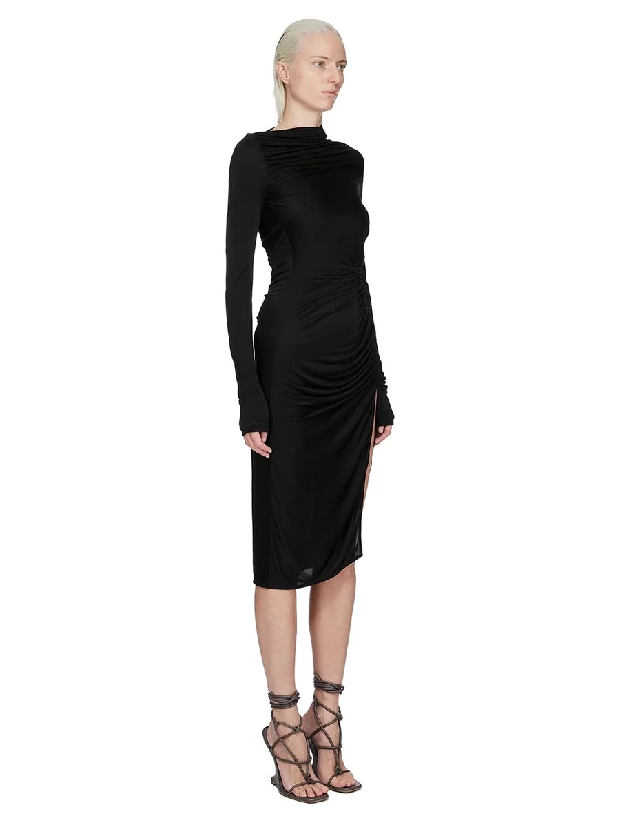 RICK OWENS FW25 CONCORDIANS SVITA LS DRESS IN BLACK SATIN VISCOSE JERSEY