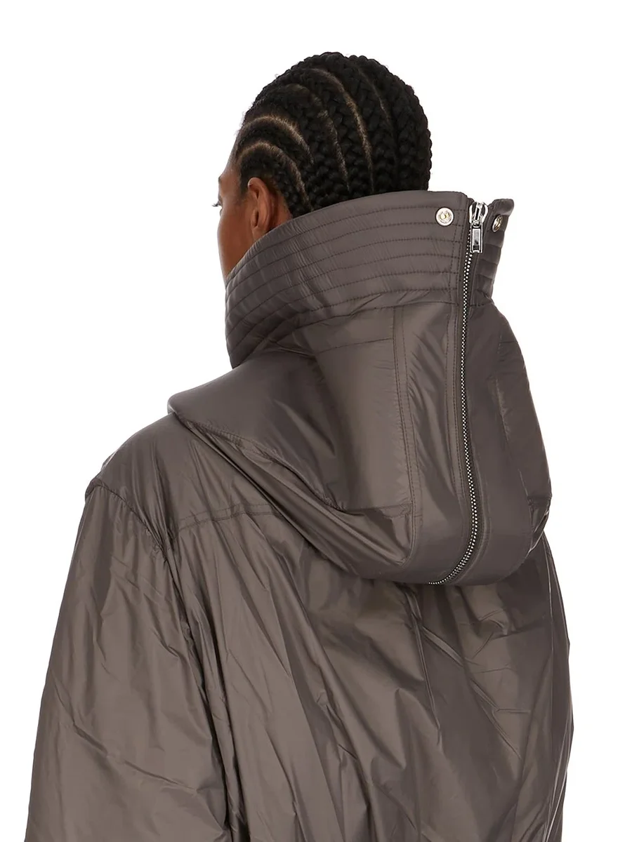 THIS CROPPED ALICE PARKA IS ABOVE HIP-LENGTH WITH LONG SLEEVES. IT HAS A CENTRE ZIPPER CLOSURE THAT IS COVERED BY A DOUBLE BREASTED THICK FLAP THAT SECURES WITH CONCEALED SNAPS. WORN CLOSED IT CREATES A HIGH FUNNEL NECK. IT HAS A LARGE HOOD WITH DRAWSTRING WHICH IS EDGED WITH LINES OF SIGNATURE STITCHING AND HAS A CENTRE ZIPPER THAT CAN BE WORN OPEN TO CREATE A LARGE COLLAR OVER THE SHOULDERS. IT HAS SIGNATURE LEVEL SHOULDER SEAMS, TWO SIDE WELT POCKETS WITH SNAPS, RIBBED CUFFS AND WIDE WAISTBAND.