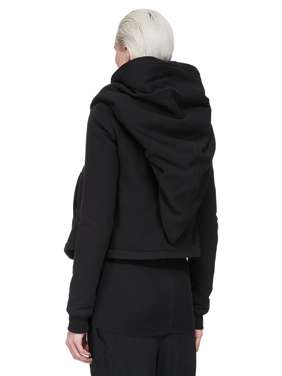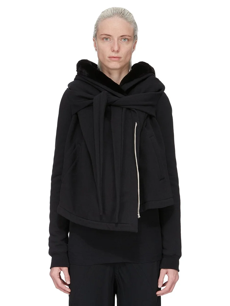 RICK OWENS HUN CROPPED HOODED WRAP IN BLACK