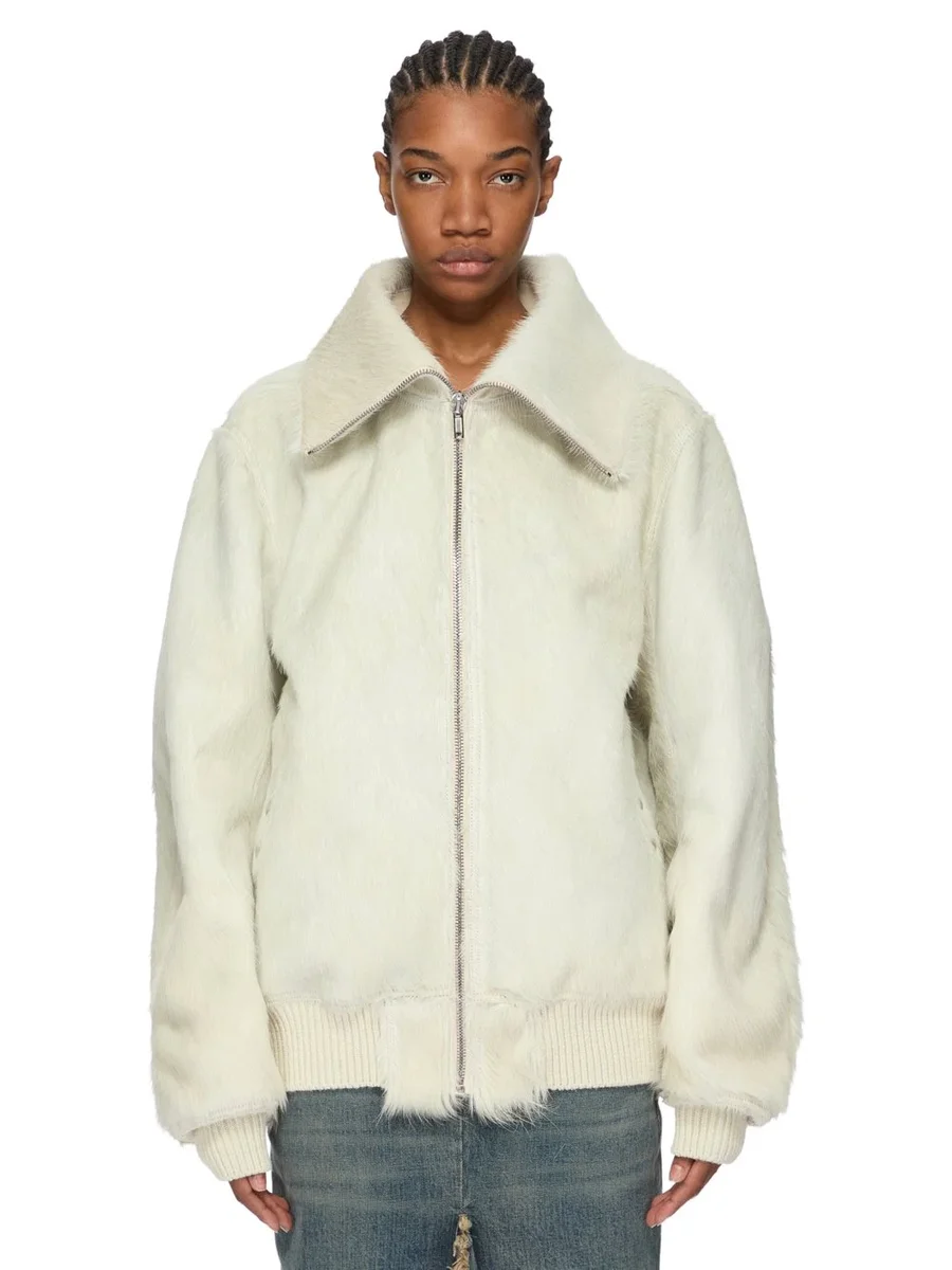 RICK OWENS FW25 CONCORDIANS RUNWAY DRACUCOLLAR FLIGHT IN MILK UNSHAVED COW LEATHER