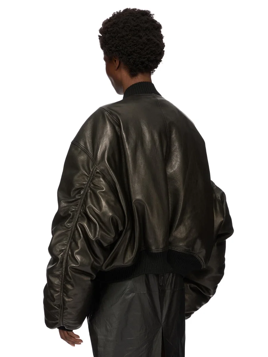 RICK OWENS FW25 CONCORDIANS RUNWAY CAL BOMBER IN BLACK VEG NAPPA LAMB