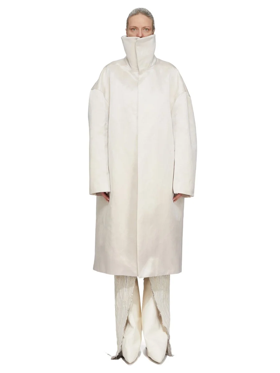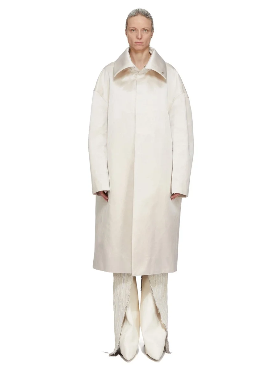 RICK OWENS FW25 CONCORDIANS RUNWAY DRACUCOLLAR MAC IN NATURAL COTTON SILK DUCHESSE