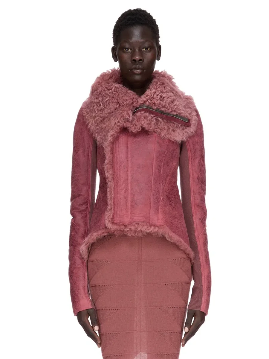 RICK OWENS FW25 CONCORDIANS NASKA BIKER IN ROOSEWOODTOSCANA SHEARLING