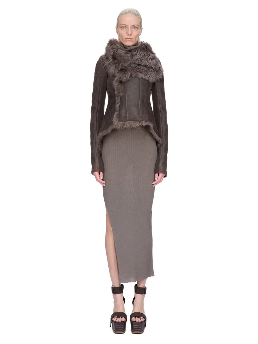 RICK OWENS FW25 CONCORDIANS NASKA BIKER IN DARKDUST TOSCANA SHEARLING