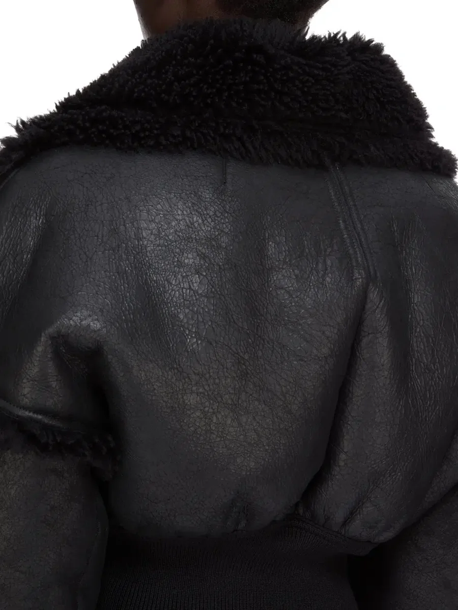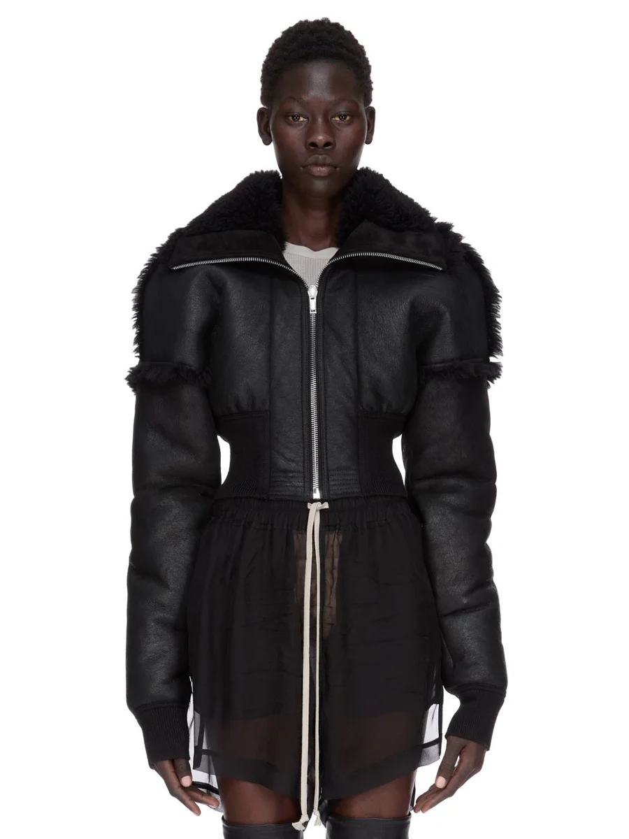 RICK OWENS FW25 CONCORDIANS FLIGHT JKT CROPPED IN BLACK CURLY SHEARLING