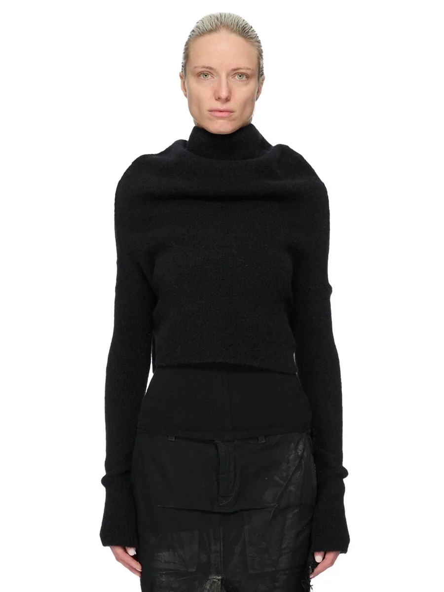 RICK OWENS FW25 CONCORDIANS RUNWAY LS COWL IN BLACK