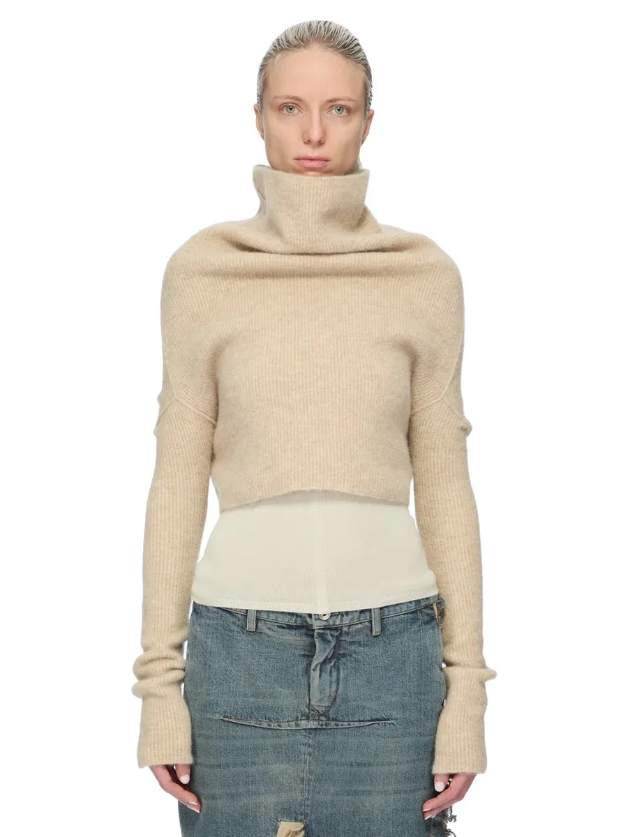RICK OWENS FW25 CONCORDIANS RUNWAY LS COWL IN DNA DUST ALPACA KNIT