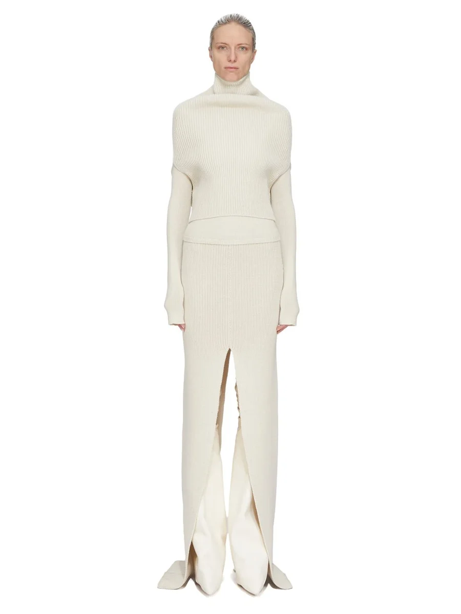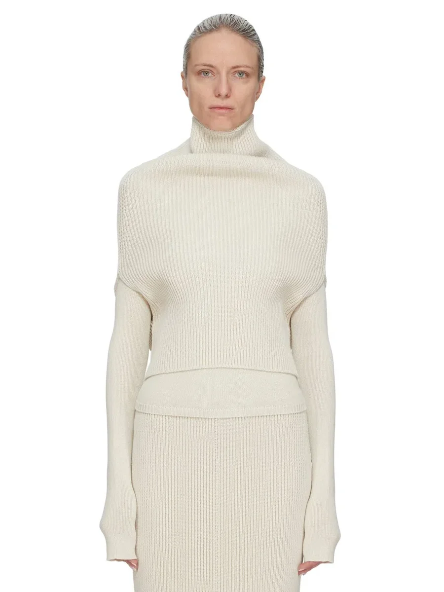 RICK OWENS FW25 CONCORDIANS RUNWAY LS COWL IN NATURAL WOOL