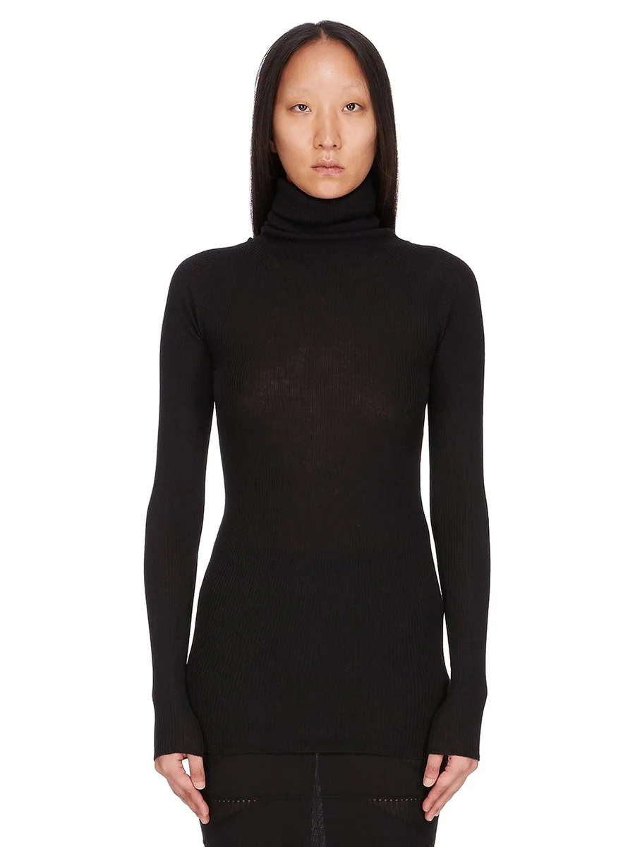RICK OWENS FW25 CONCORDIANS LS TUBE IN BLACK RIBBED KNIT