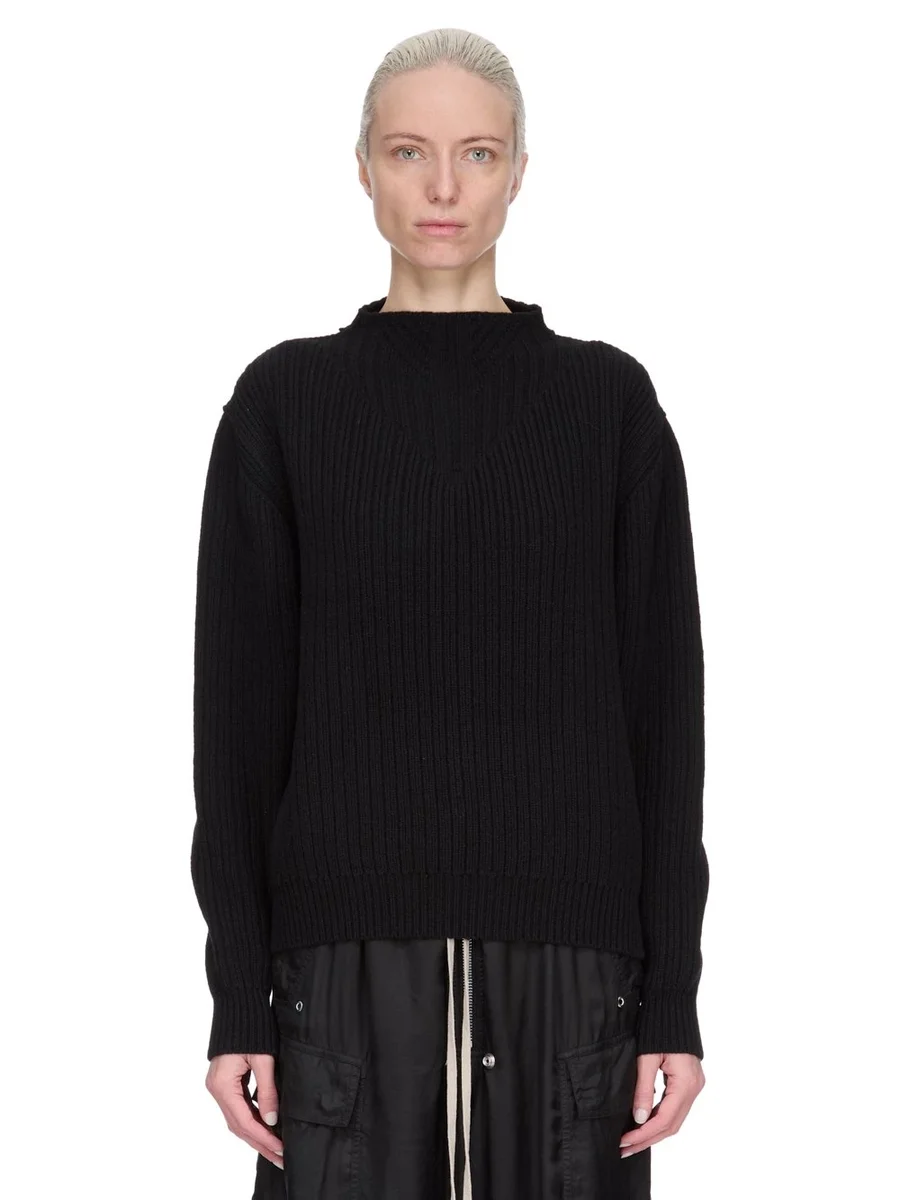 RICK OWENS FW25 CONCORDIANS AL PULL IN BLACK HEAVY WOOL KNIT