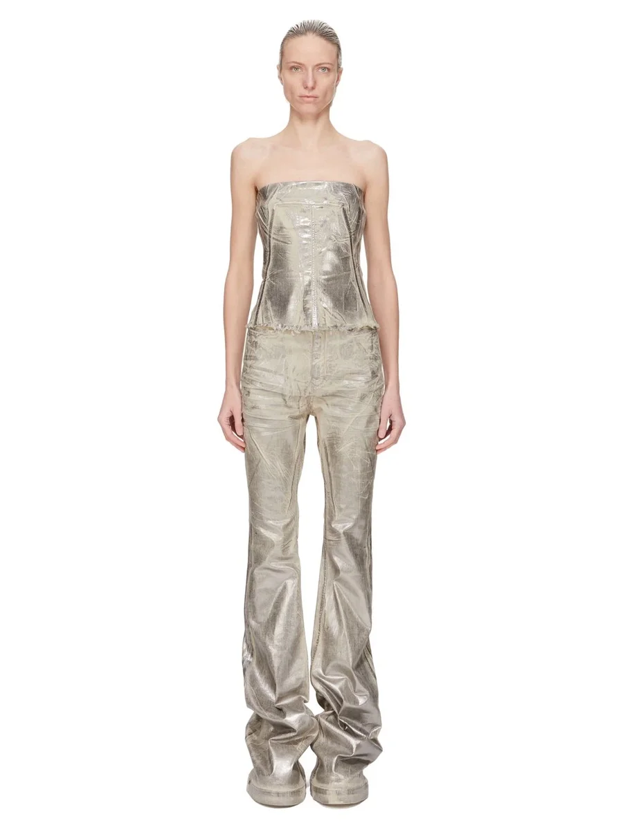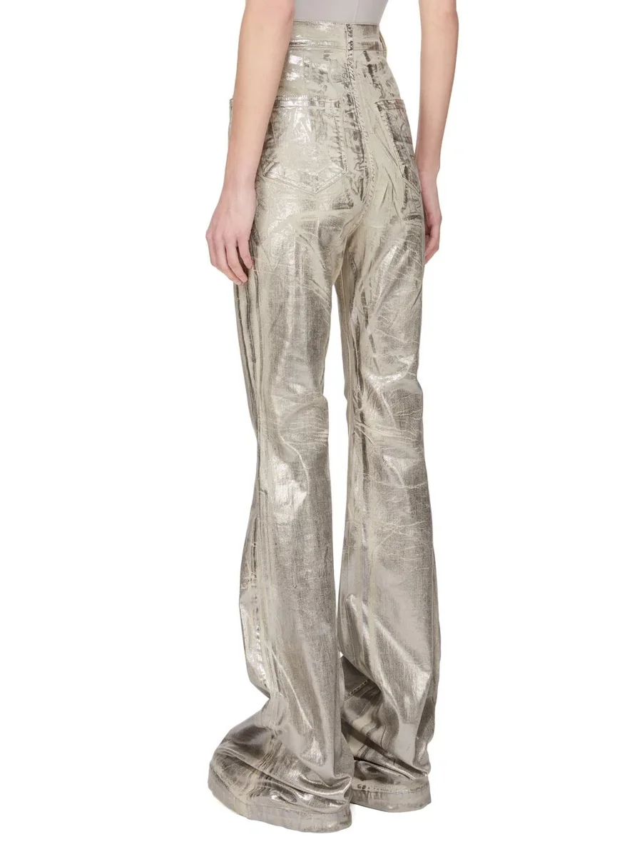 DRKSHDW FW25 CONCORDIANS BOLAN BOOTCUT IN PALLADIUM FOIL STRETCH DENIM