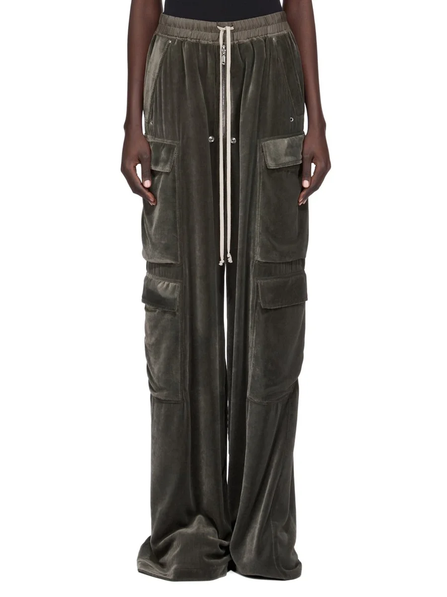 RICK OWENS FW25 CONCORDIANS CARGOBELAS PANTS IN BOSCO VELVET