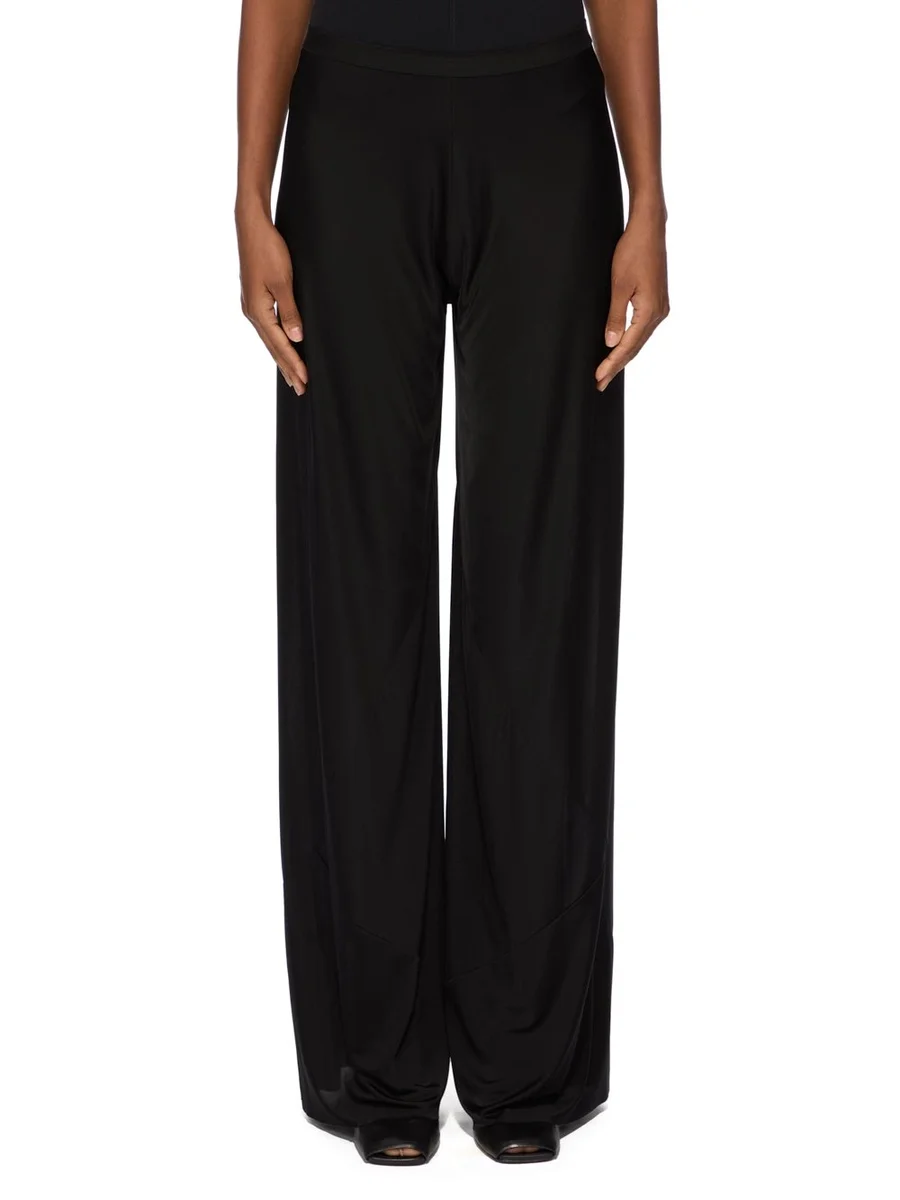 RICK OWENS FW25 CONCORDIANS BIAS PANTS IN BLACK SATIN VISCOSE JERSEY