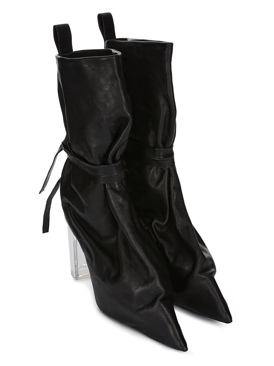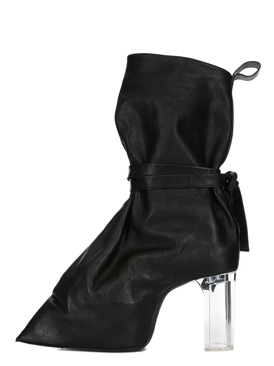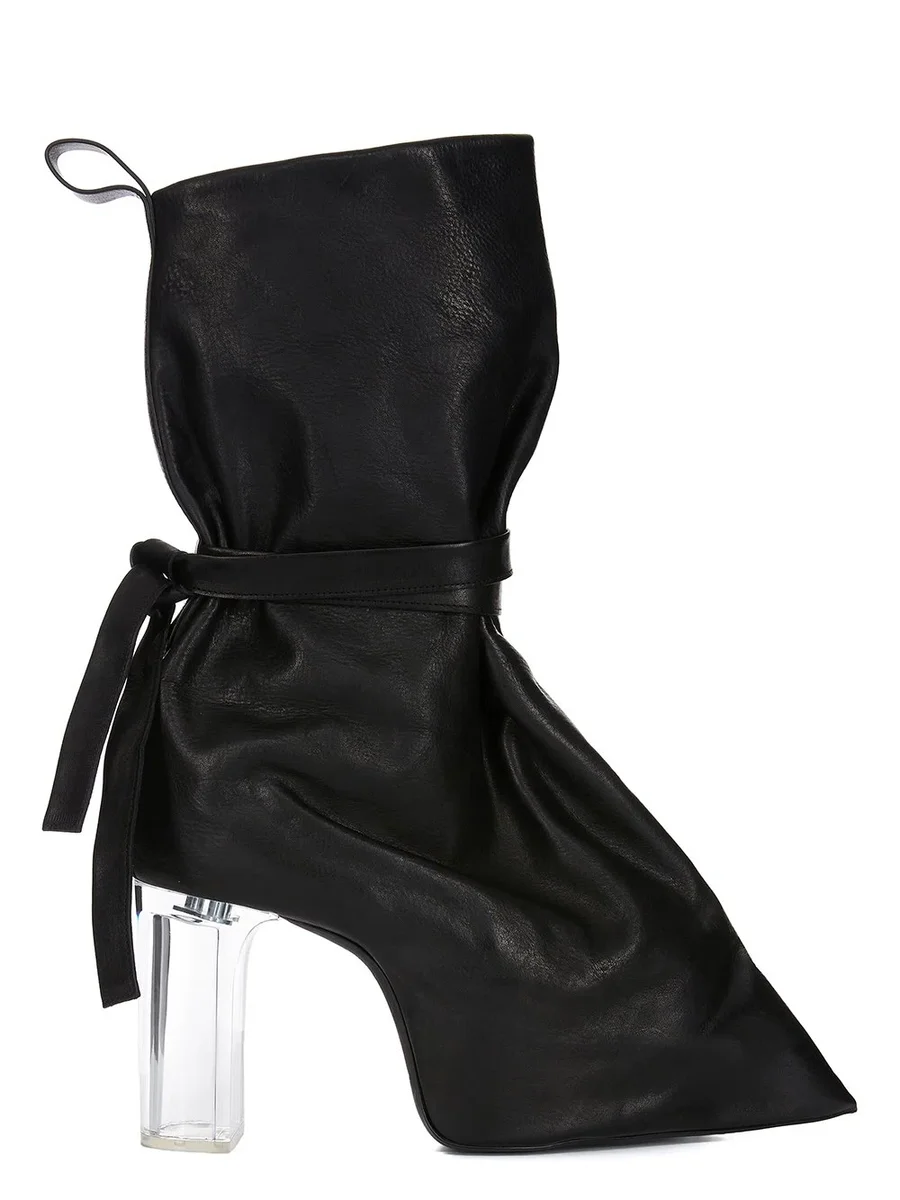 RICK OWENS FW25 CONCORDIANS RUNWAY TIED TACO KISS IN BLACK/CLEAR WASHED CALF LEATHER