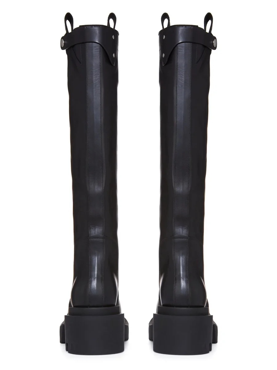 RICK OWENS FW25 CONCORDIANSKNEE PULL ON BOGUN BOOTS IN BLACK WASHED CALF LEATHER