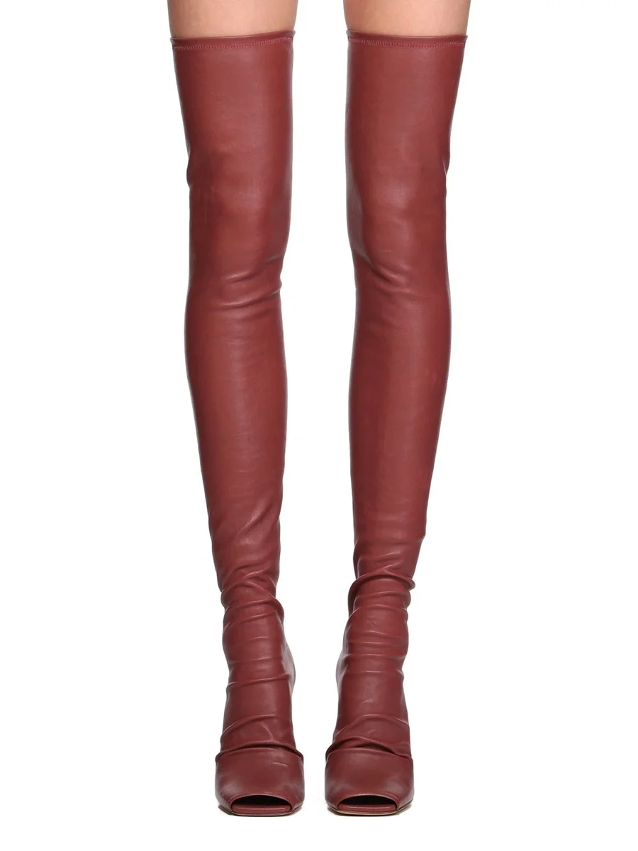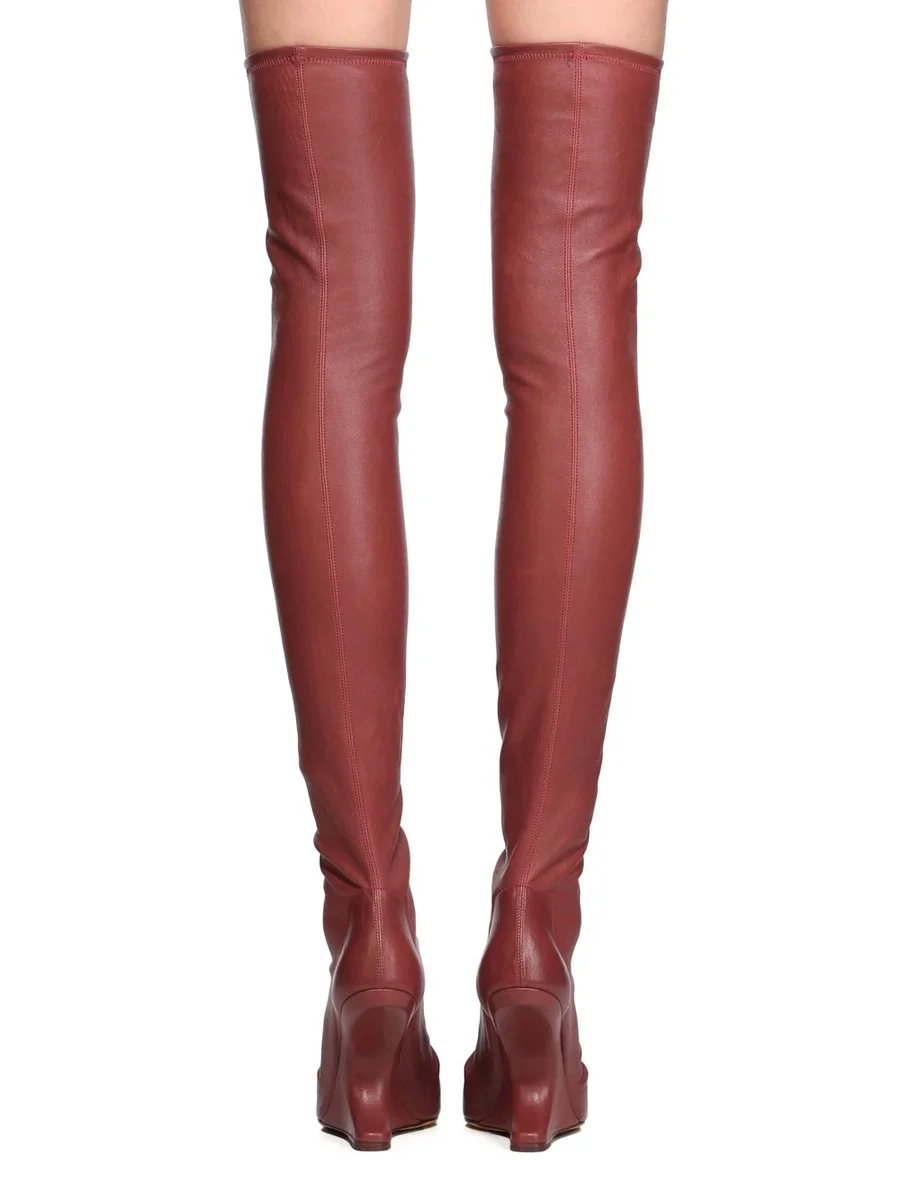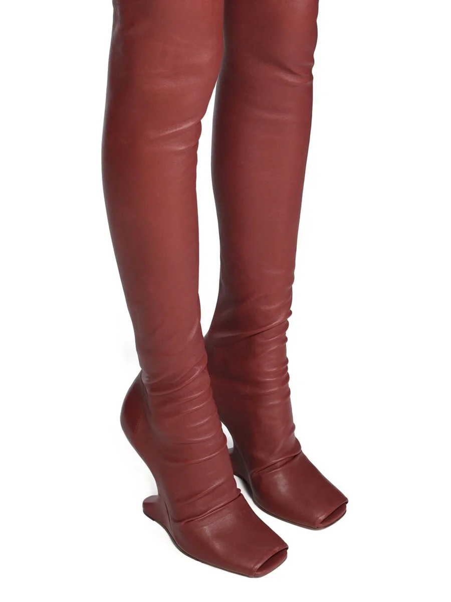 RICK OWENS FW25 CONCORDIANS CANTILEVER 11 THIGH HIGH IN ROSEWOOD STRETCH LAMB LEATHER