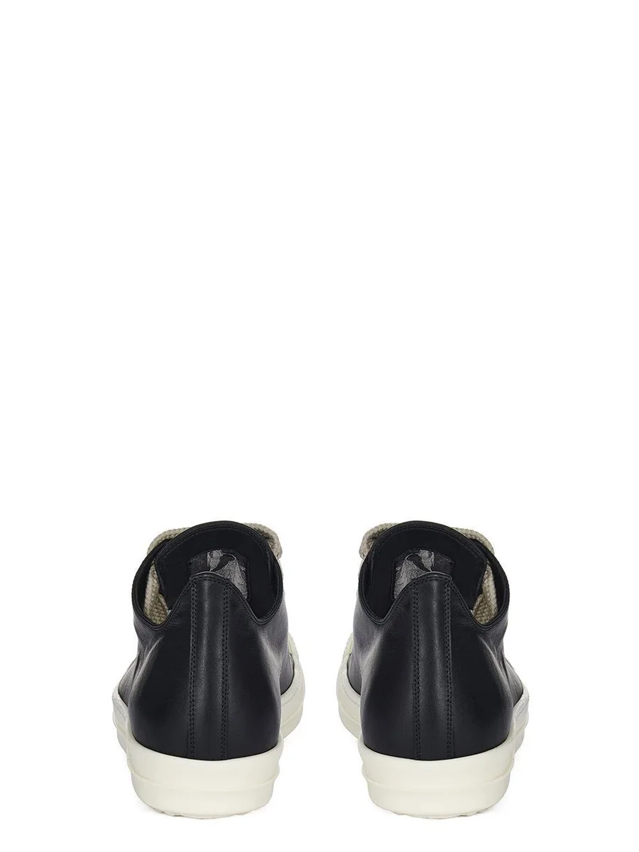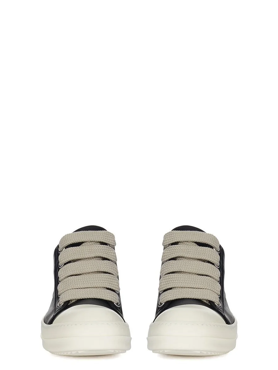 RICK OWENS FW25 CONCORDIANS JUMBOLACE LOW SNEAKS IN BLACK/MILK/MILK FULL GRAIN COW LEATHER