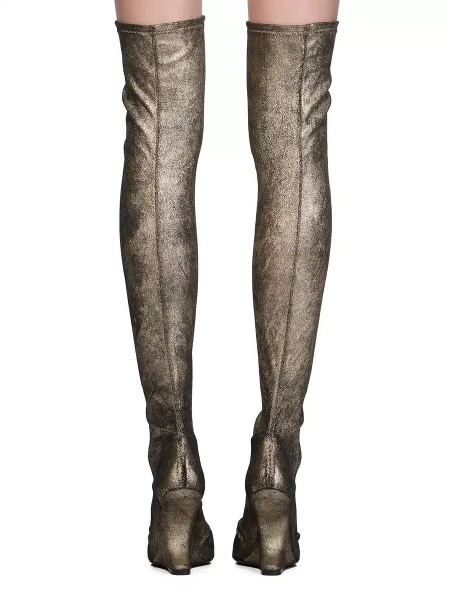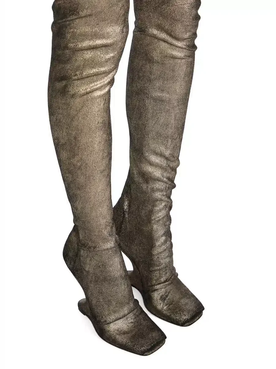 RICK OWENS FW25 CONCORDIANS CANTILEVER 11 BOOT IN GOLD METALLIC STRETCH LAMB LEATHER