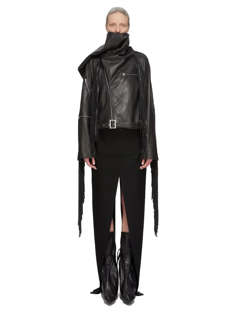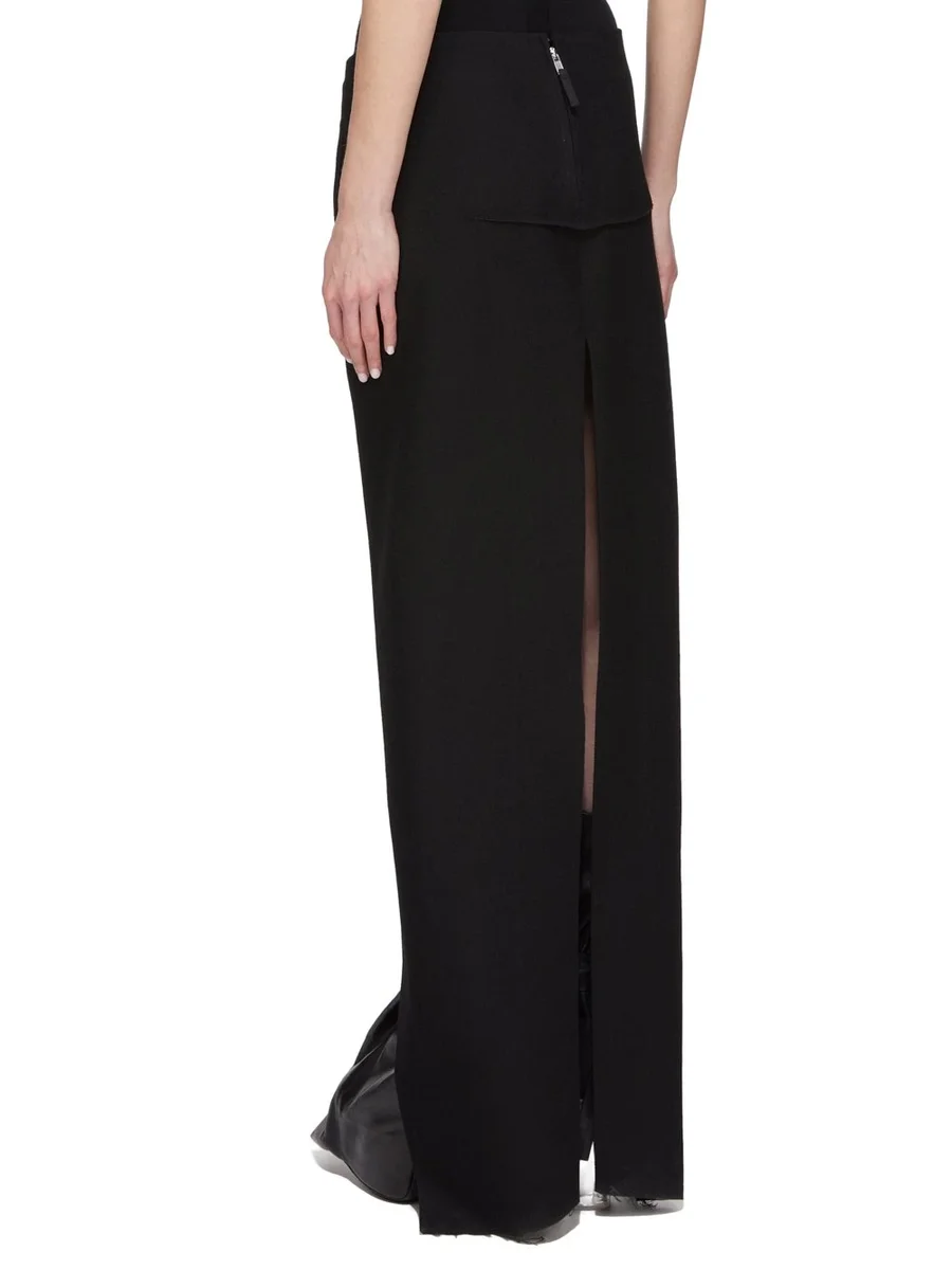 RICK OWENS FW25 CONCORDIANS RUNWAY SLICED SKIRT IN BLACK WOOL DRILL