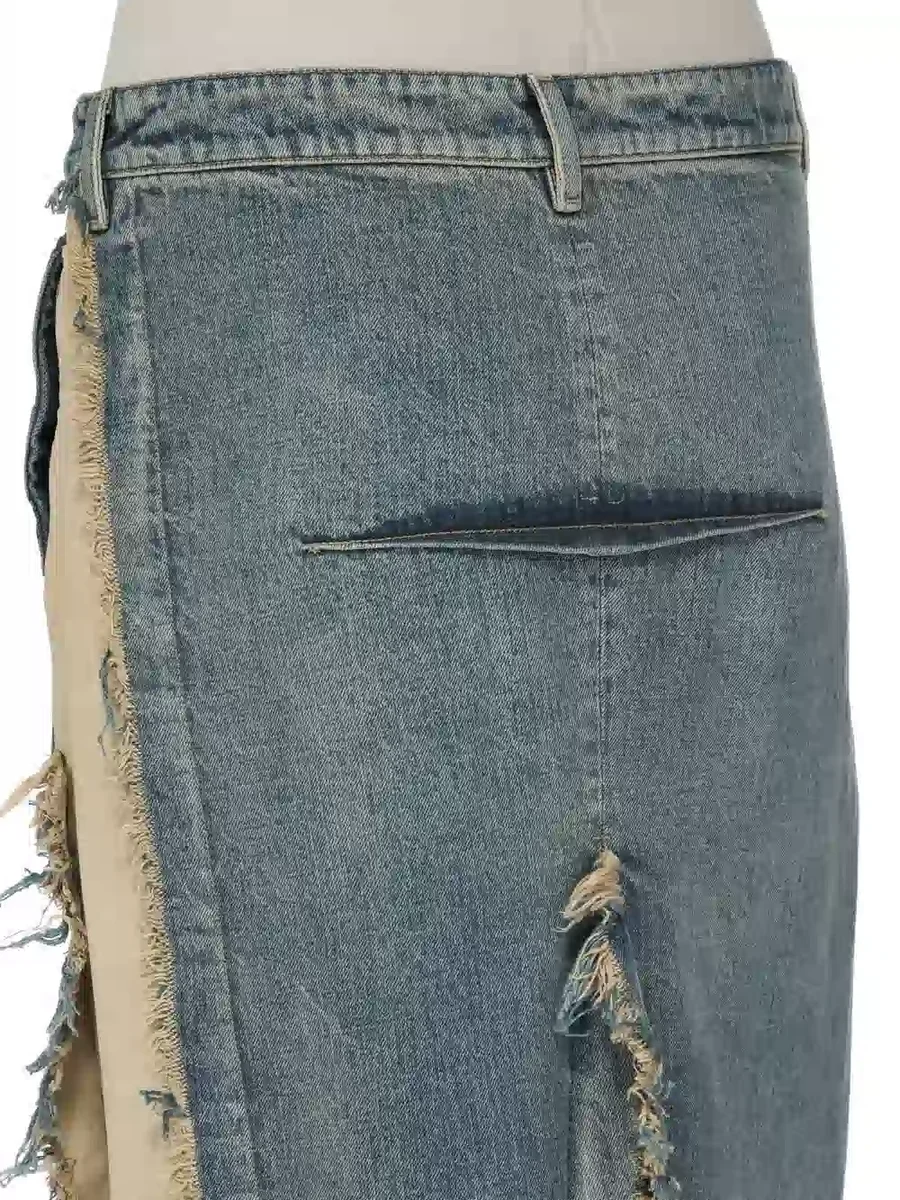 RICK OWENS FW25 CONCORDIANS RUNWAY DENIM SLICED SKIRT IN DIRTY HUSTLER/NATURAL 14OZ HUSTLER SLUB DENIM AND COTTON TELA