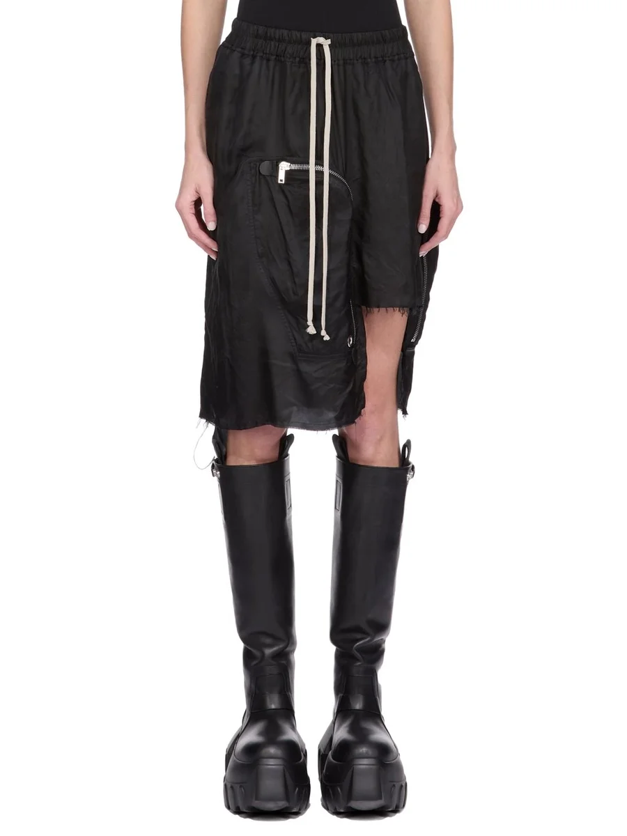 RICK OWENS FW25 CONCORDIANS DRACCA SKIRT IN BLACK CUPRO TWILL