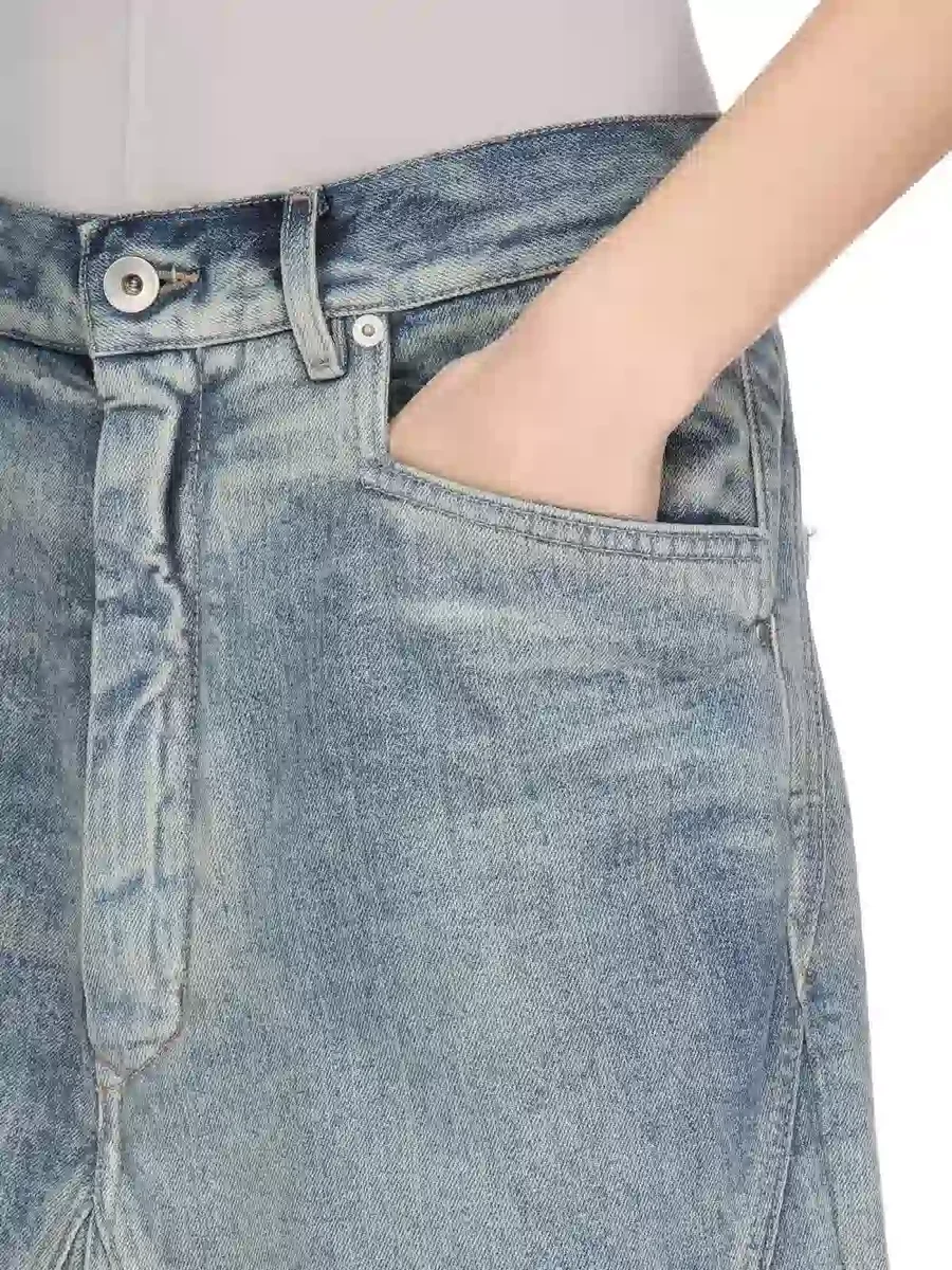 RICK OWENS FW25 CONCORDIANS LONG SLIVERED SKIRT IN DIRTY HUSTLER 14OZ SLUB DENIM