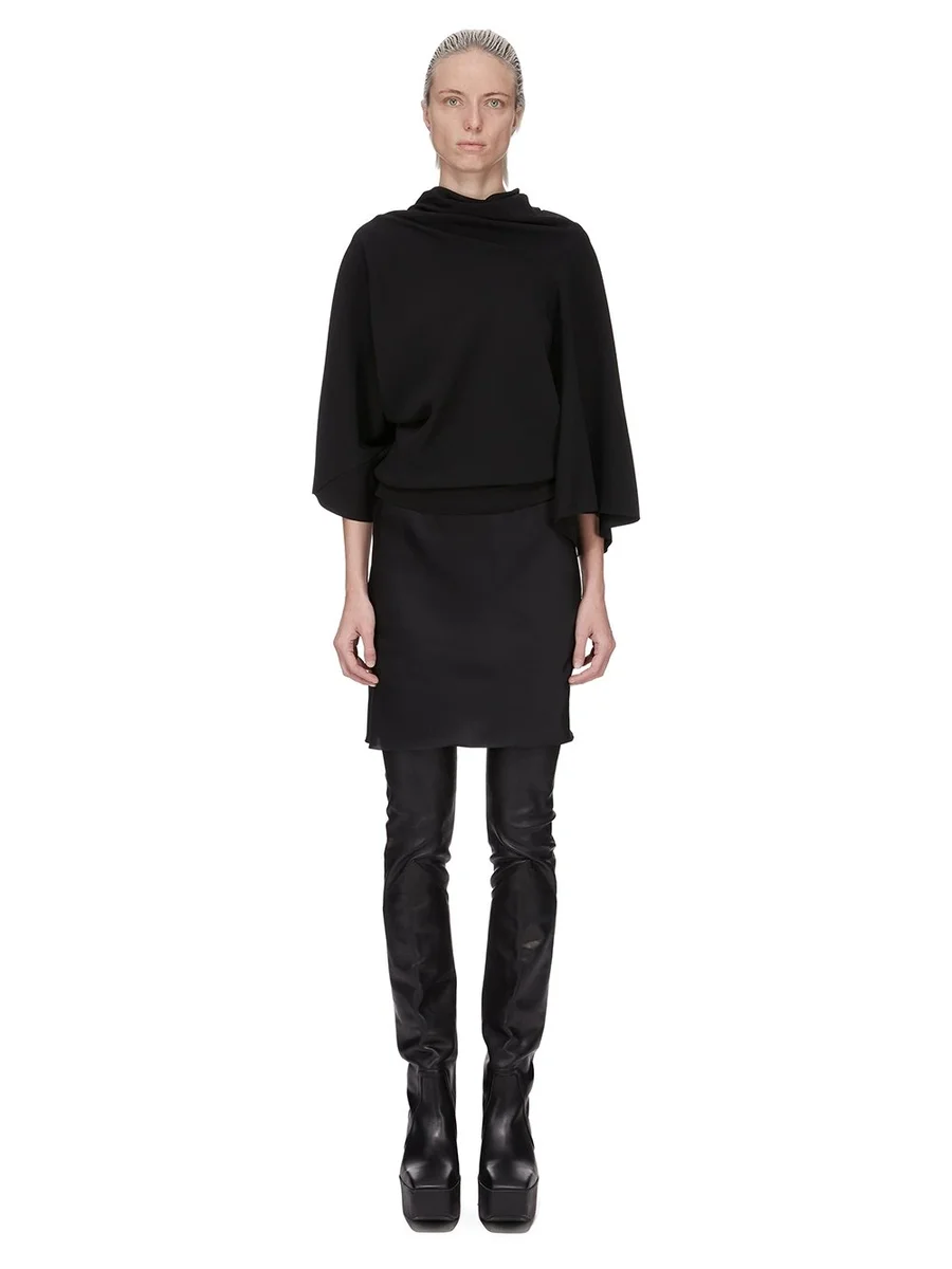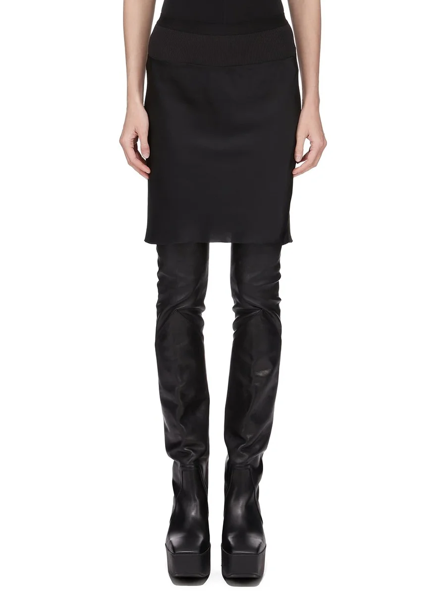 RICK OWENS FW25 CONCORDIANS SHORT BIAS SKIRT IN BLACK WASHED CHARMEUSE