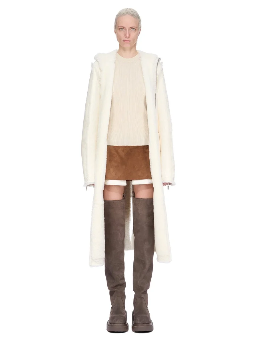 RICK OWENS FW25 CONCORDIANS FOG CUTOFF MINI IN CHESTNUT SUEDE LEATHER