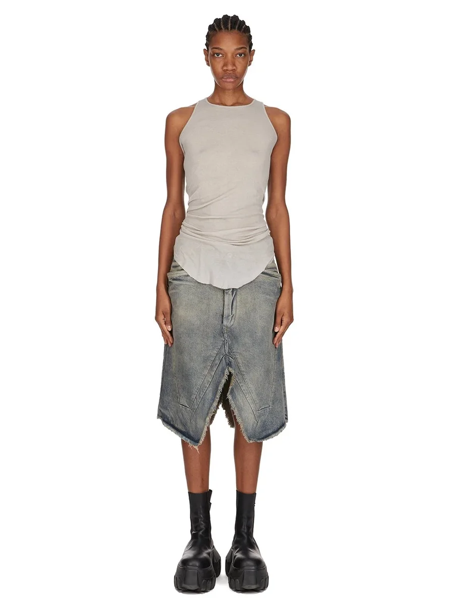 RICK OWENS FW25 CONCORDIANS LONG SLIVERED SKIRT IN DIRTY HUSTLER 14OZ HUSTLER SLUB DENIM