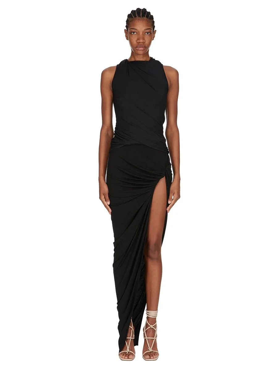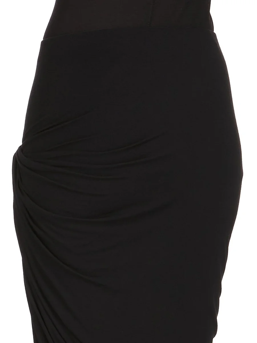 RICK OWENS FW25 CONCORDIANS TWIST EDFU SKIRT I IN BLACK SATIN VISCOSE JERSEY
